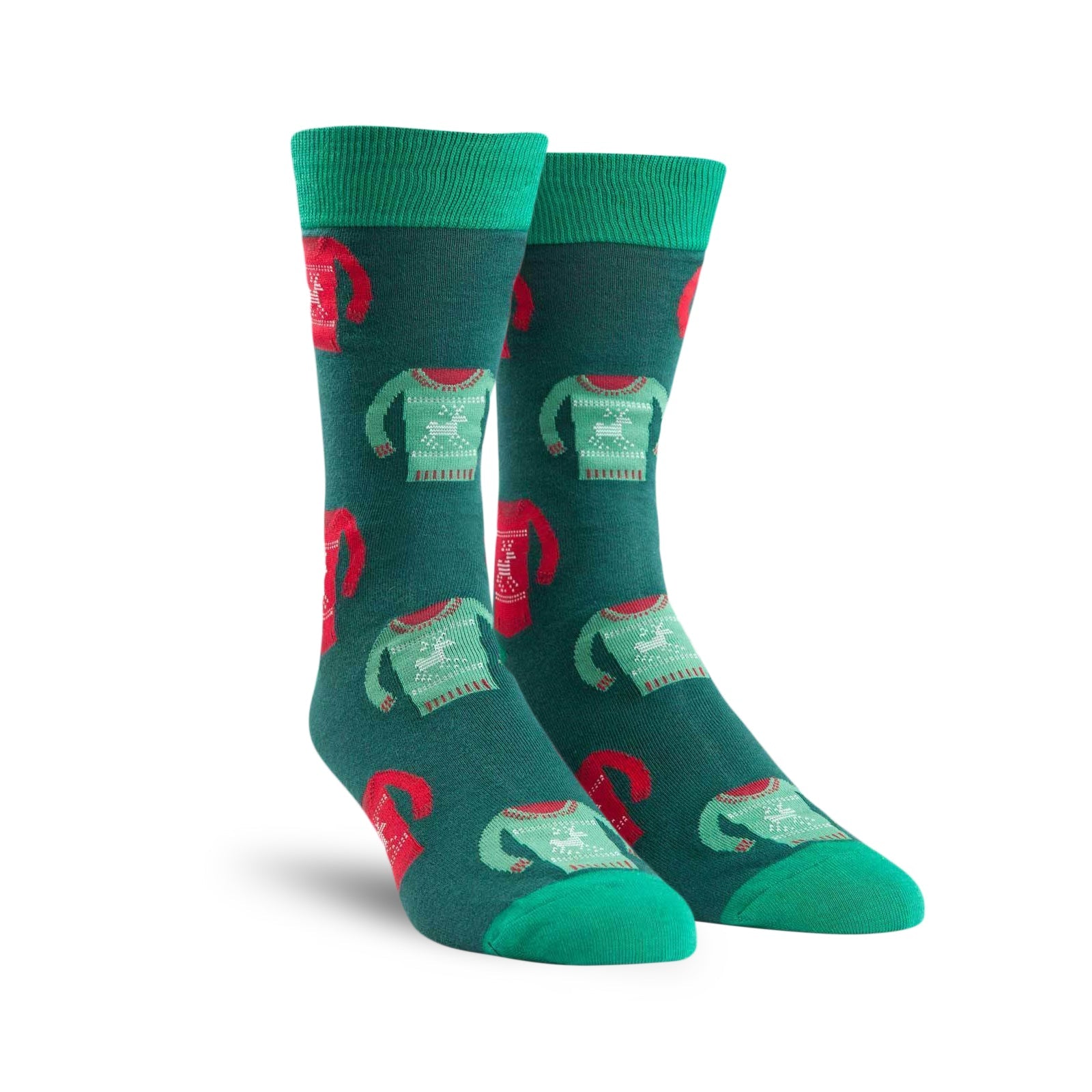 Ten years ago, tacky sweaters cornered the market on festive fashion. Last year, it was tacky sweater patterned socks that lead the way. This year? Tacky sweaters on socks-literally. No worries when it comes to figuring out if a party attire is tacky sweaters or tacky socks - you're covered on both ends with these cool socks.
