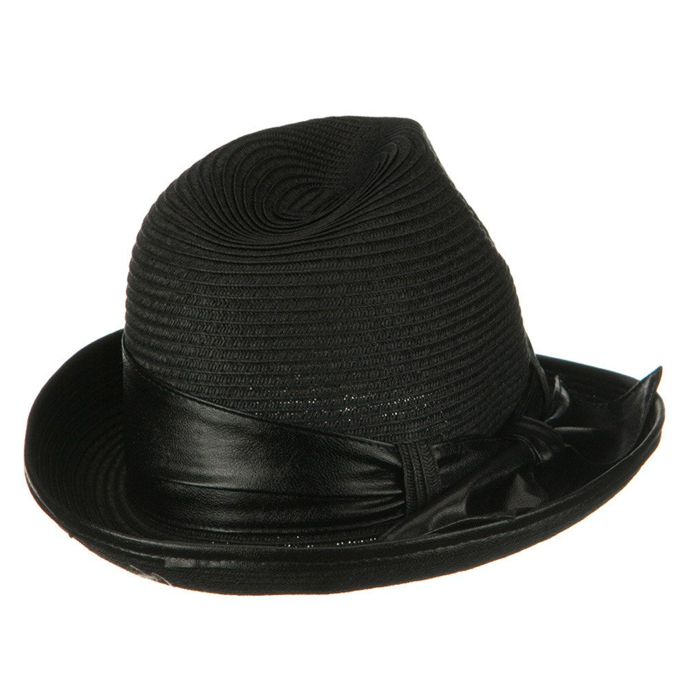 High UV Protection, UPF 50+ Slanted Leather Brim Fedora, offering excellent UV protection by blocking harmful UVA and UVB rays.