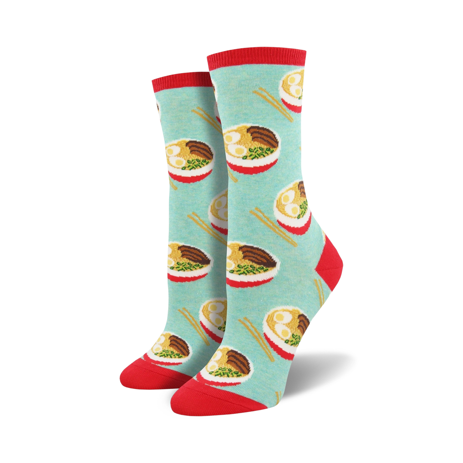 Whether you're a fan of pho, chow mien, or ramen, these delicious looking socks are guaranteed to make your mouth water! Each cool pair of women's novelty crew socks feature bowls of noodles and chopsticks printed all over.