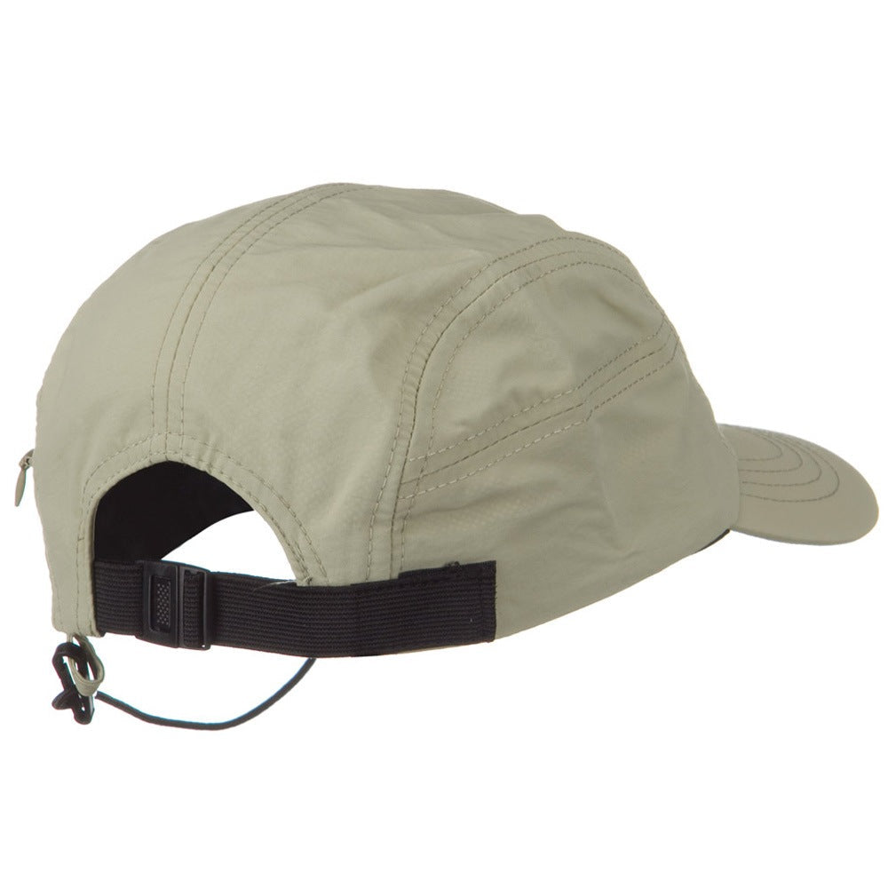 Adjustability, Back of cap fitted with adjustable buckle strap closure and clip holder for secure fit