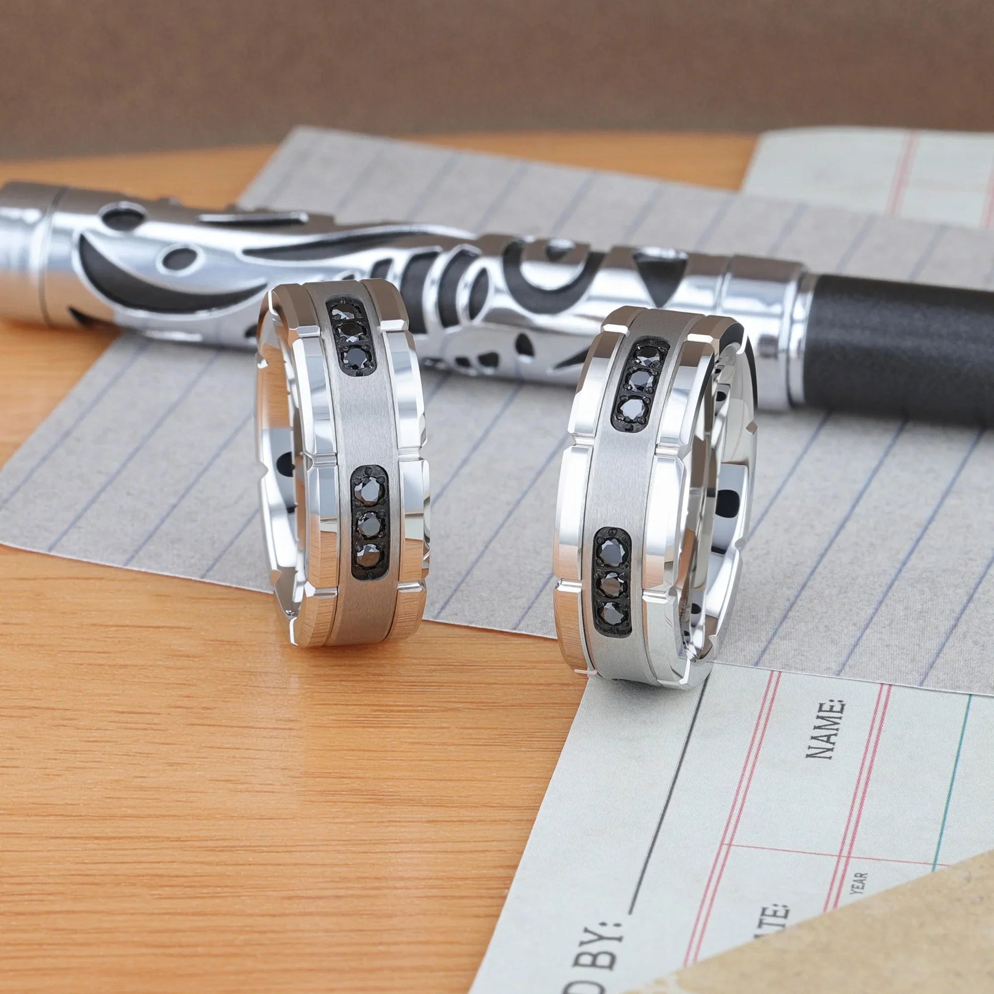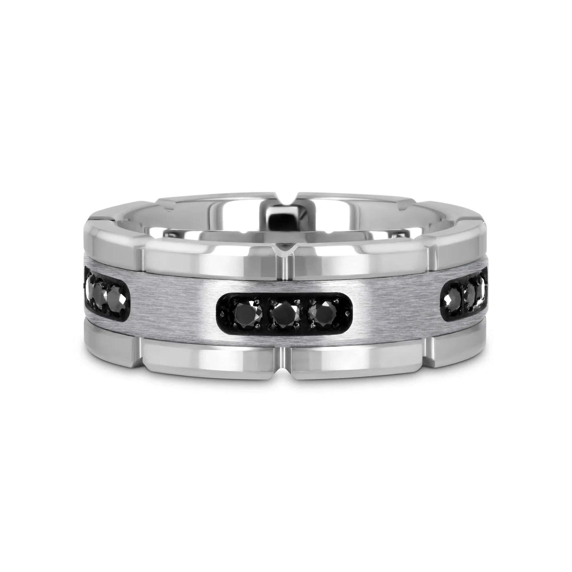 VALOR Grooved Tungsten Ring with Silver Inlay & Black Diamonds - 8mm