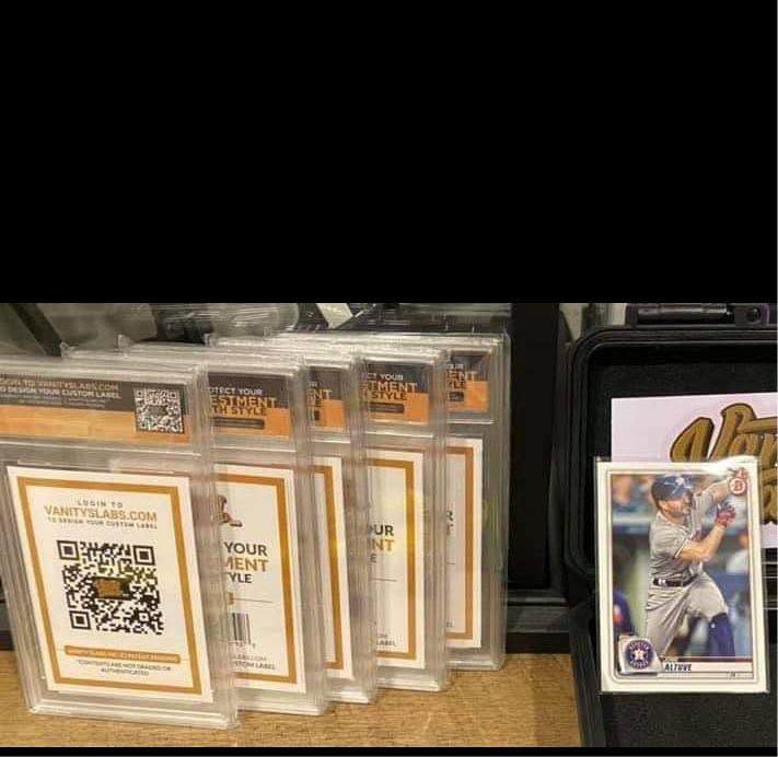 Vanity Slab Trading Card Display Capsule - The revolutionary original storage slab featuring a unique Personalized Label Display, provides professional protection and presentation with an attractive look. Constructed from durable materials, designed to protect trading cards from scratches, dust, and moisture. Your cards will maintain their vibrant colors for future generations. With the crystal-clear surface, you can inspect and appreciate your cards at any time without removing them from their protective case. Vanity Slabs are the quintessential upgrade for serious collectors, investors, or businesses eager for premium quality storage and display!