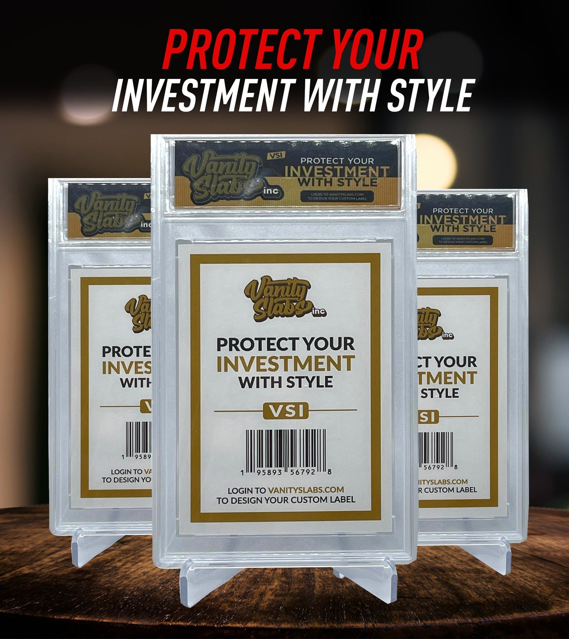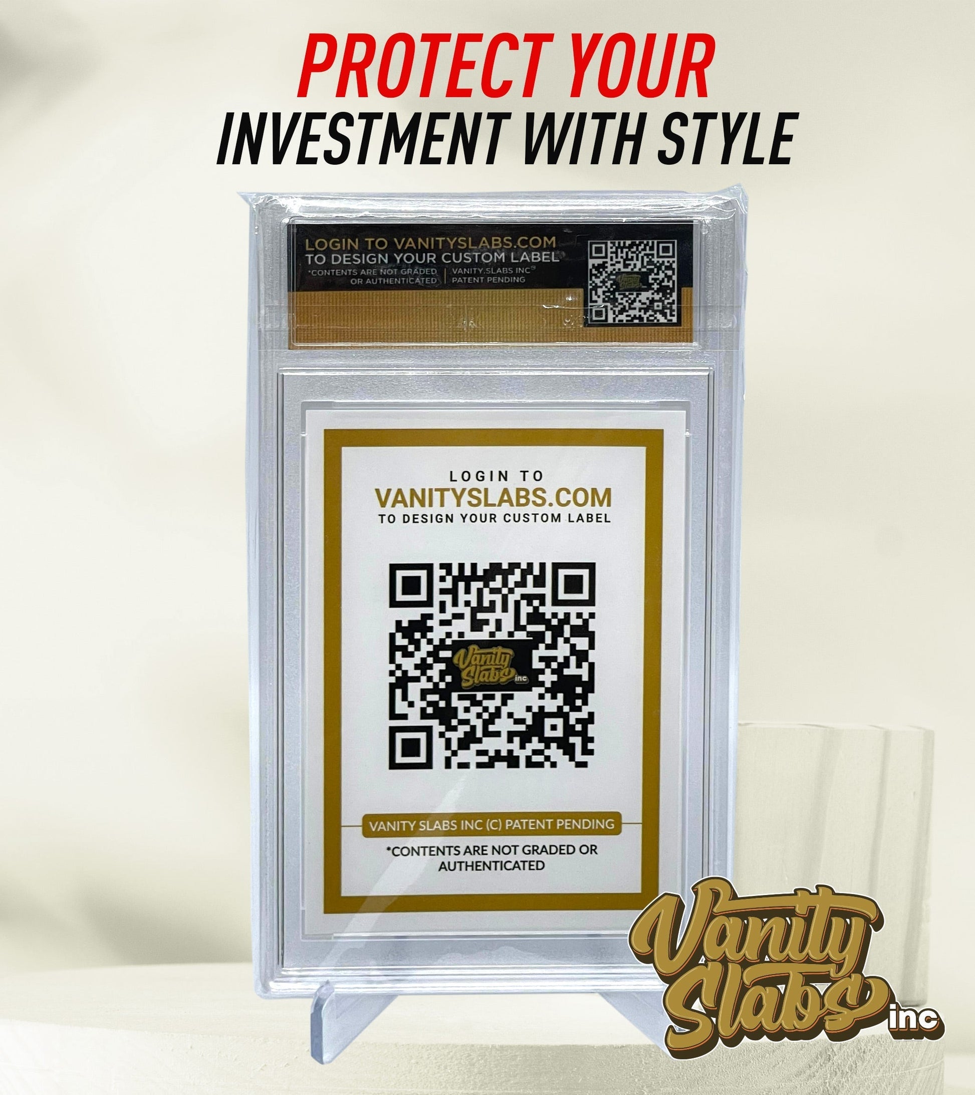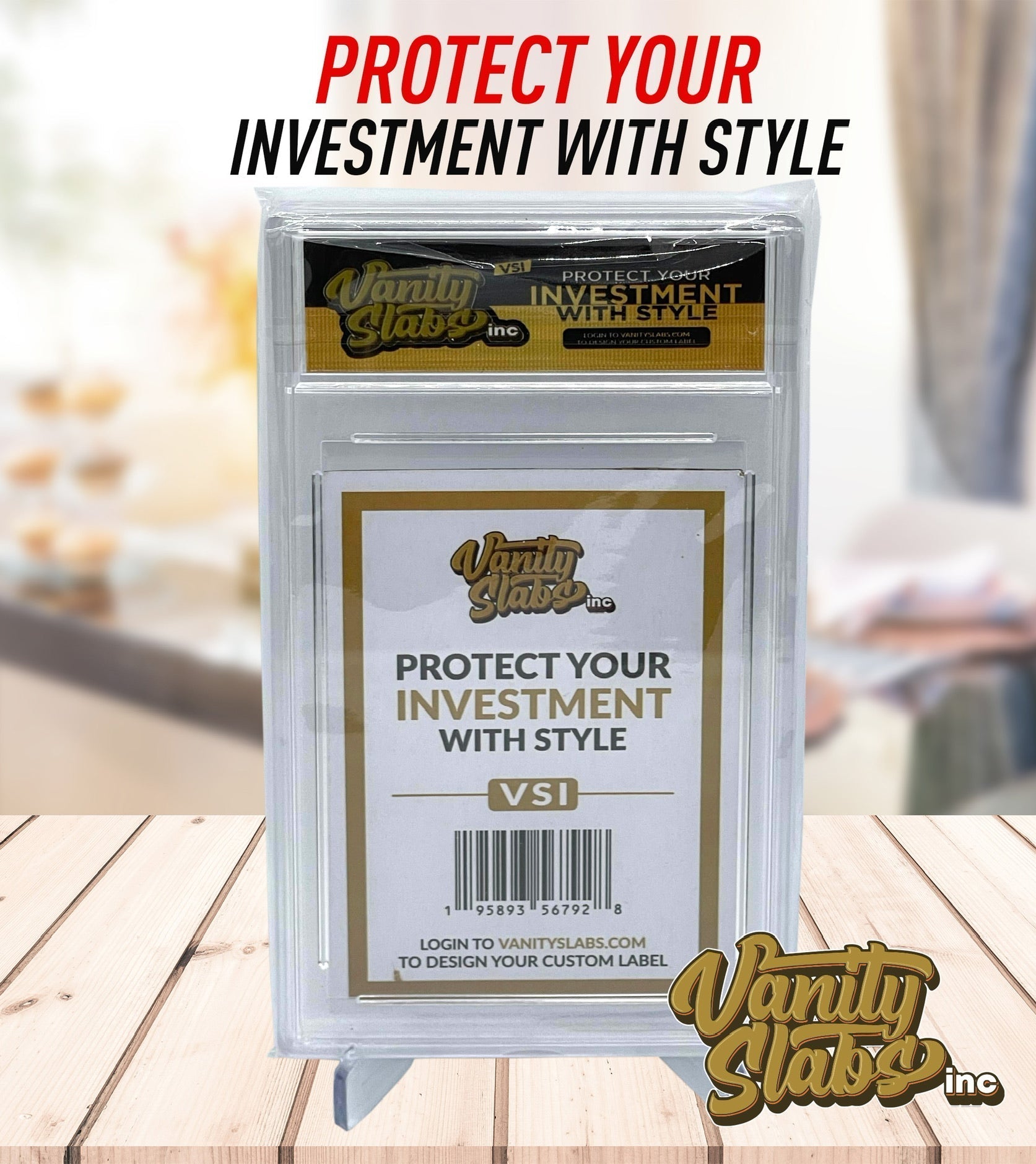 Vanity Slab Trading Card Display Capsule - Experience revolutionary storage with our unique Personalized Label Display. This feature provides professional protection and stunning display options for your beloved trading cards, ensuring they stay safe from surface scratches, dust, and moisture. The clear design lets you inspect and appreciate your cards without having to remove them from the protective case. Perfect for serious collectors, investors, and businesses seeking professional quality storage and display!