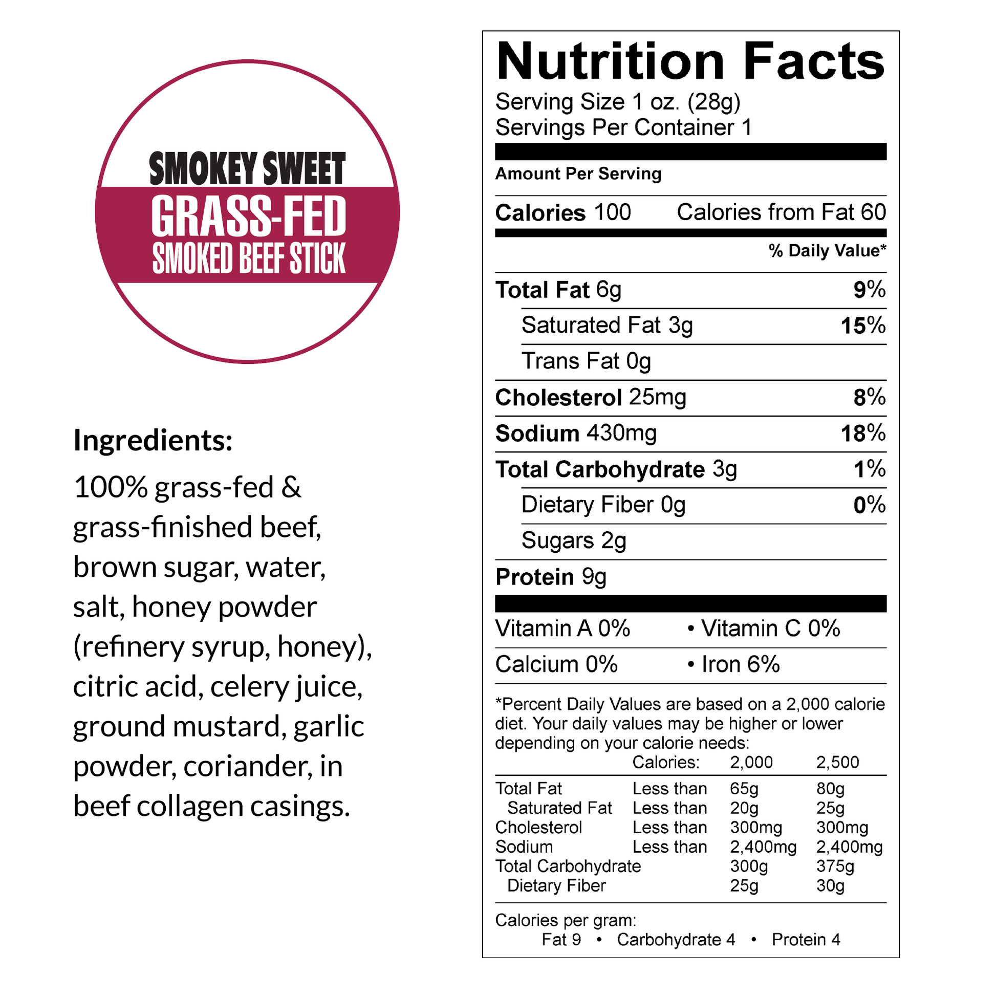 - Smokey Sweet 100% Grass-Fed Beef Sticks