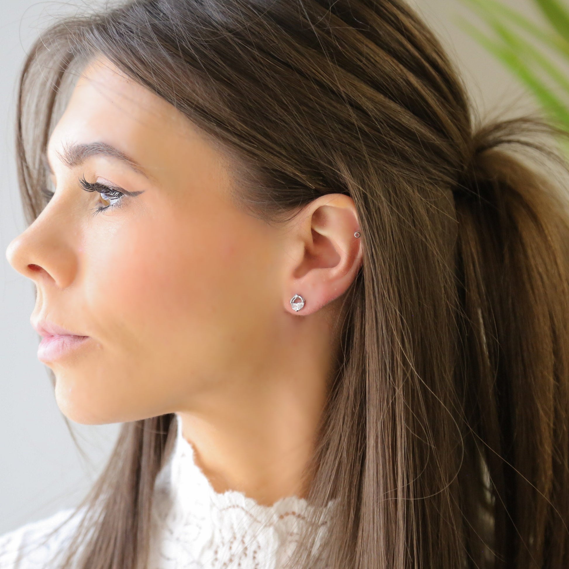 VERITY - Round Sterling Silver and Zirconia Earrings