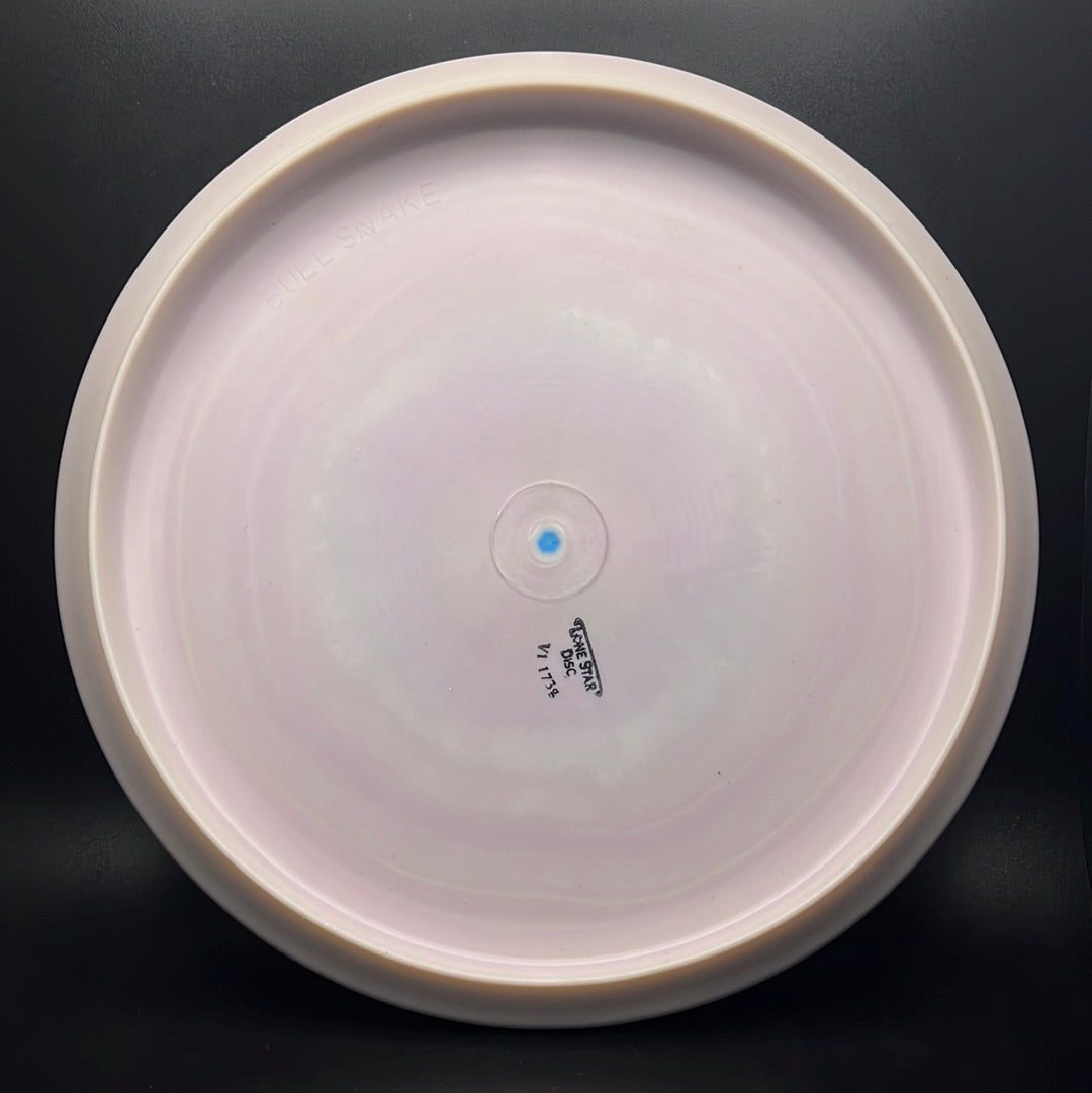The Lone Star Victor Bull Snake is an overstable putt & approach disc with a microbead. This disc golf putter has a strong shoulder, elongated wing and is great in headwinds.
