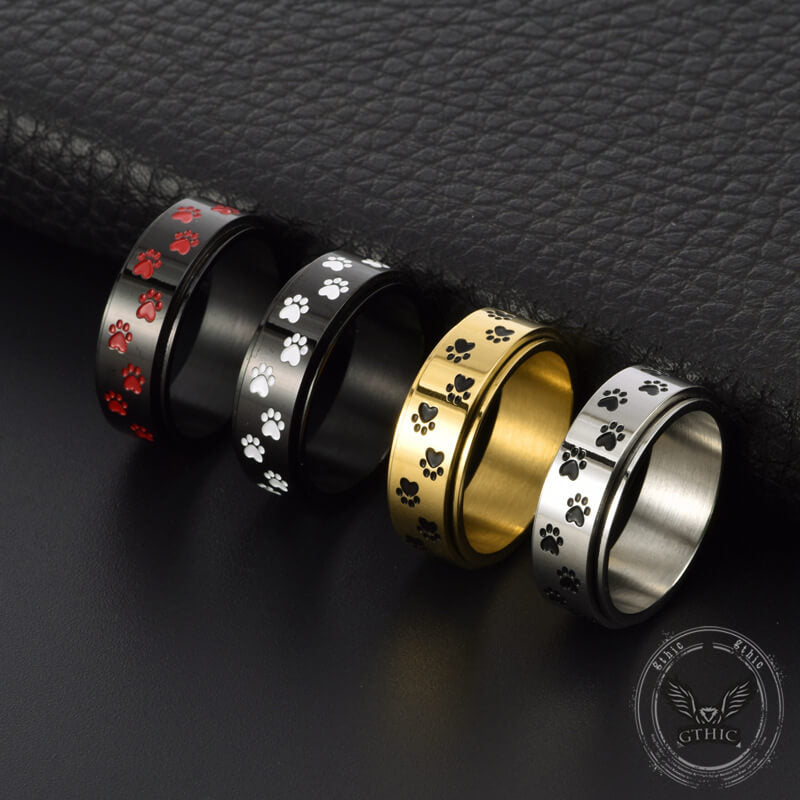 Vintage Dog Paw Print Stainless Steel Spinner Ring
