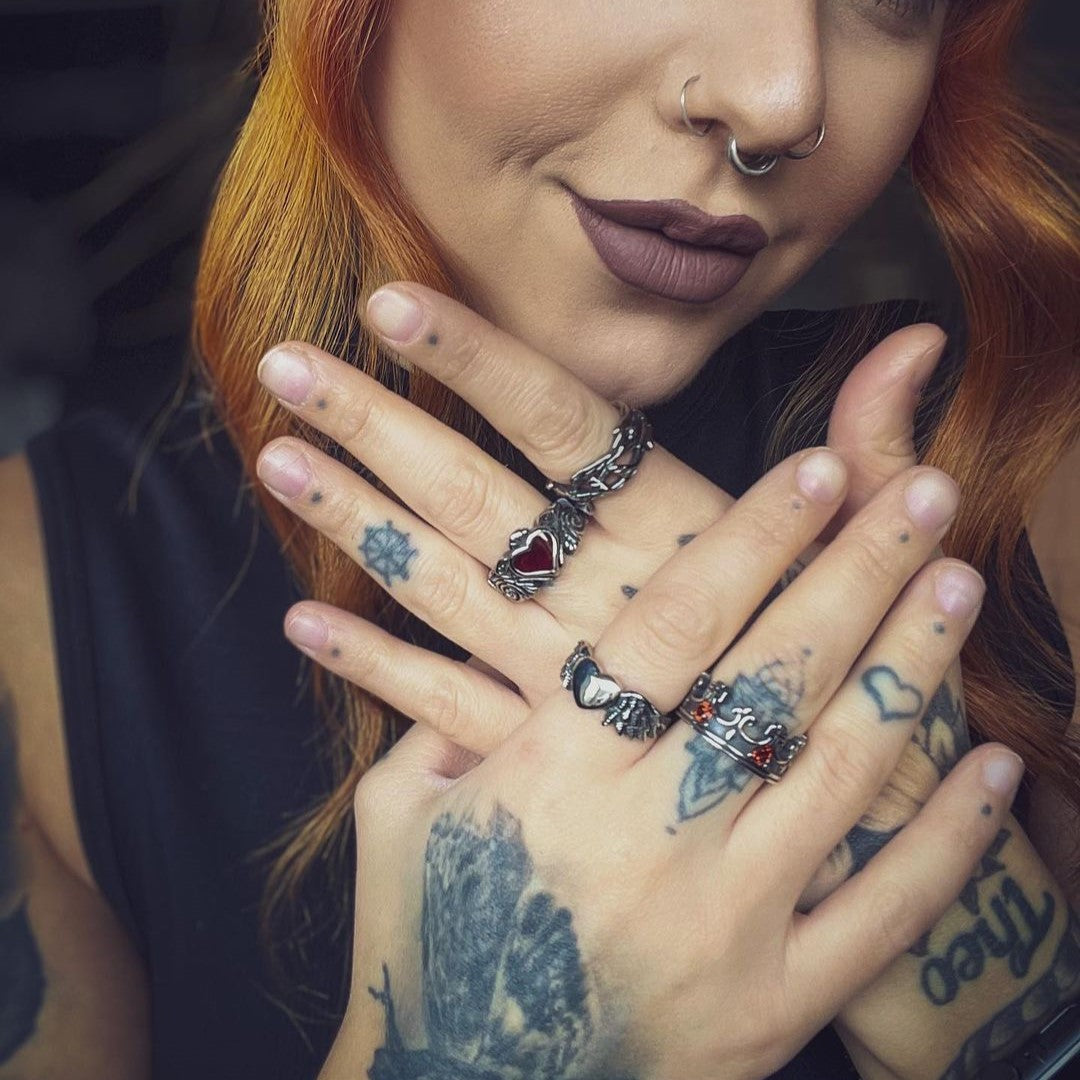The classic pattern sets off the elegance and brilliance of the heart shape, and the retro and old craftsmanship polishes the surface, and the lines are clearly visible. The red heart and black pattern show the dark and evil characteristics of the Gothic style. The heart symbol is often used to represent the center of emotion, including affection and love, especially romantic love. This goths-style ring is very suitable for cool guys in terms of appearance and meaning. Come and place it to your order!