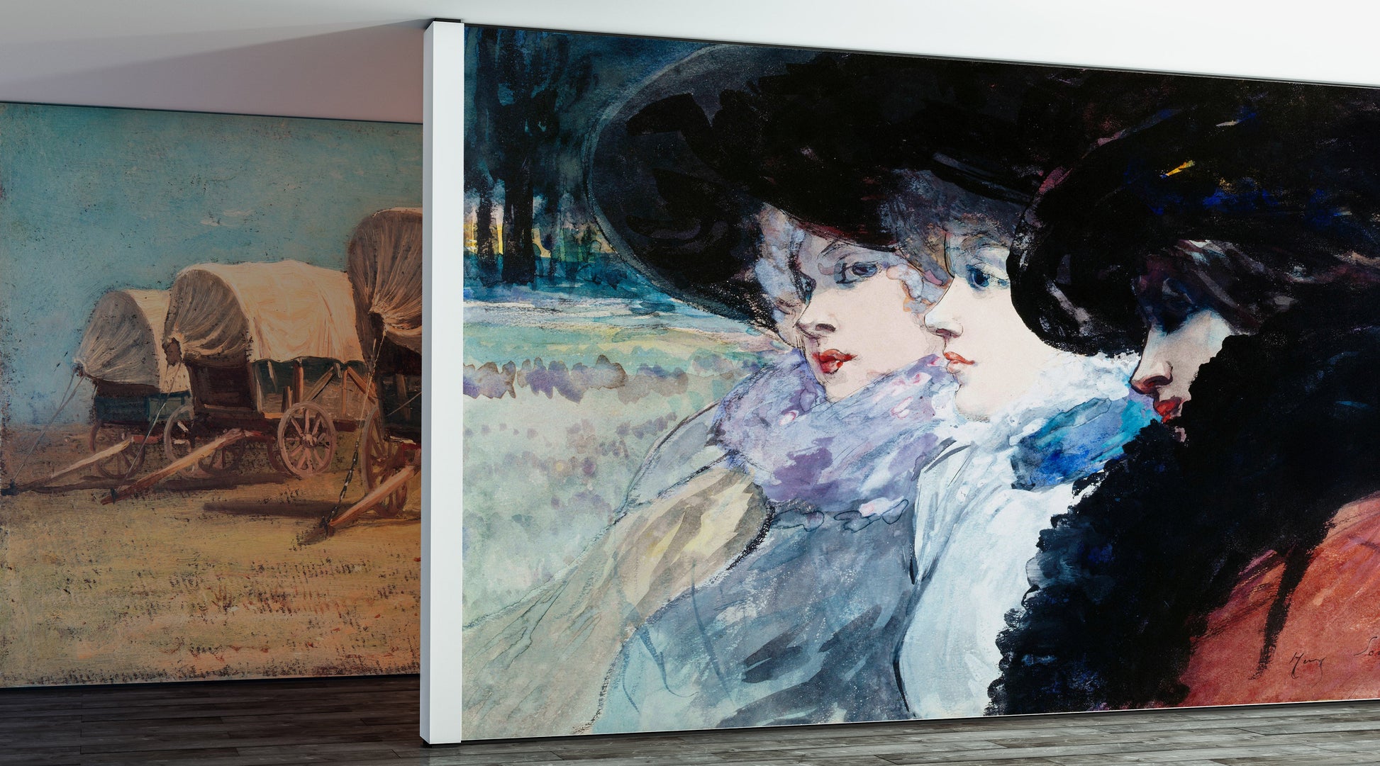 Vintage Painting, Three Women in Profile by Artist Henry Somm. Large Wall Mural / Peel and Stick Wallpaper. #6338