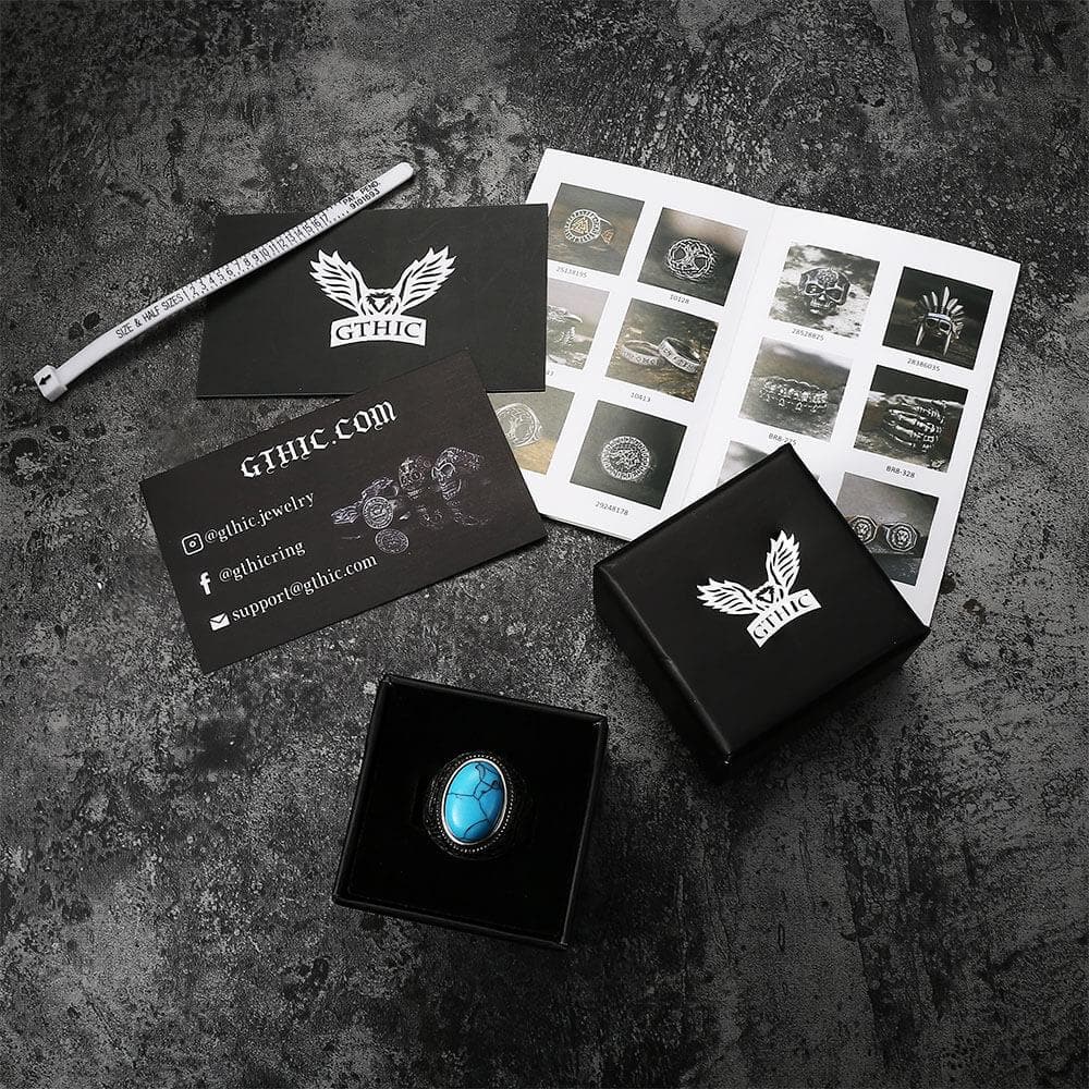 This Vintage Pattern Gem themed ring is exactly what you need to complete your accessory look. It is a beautiful ring made from stainless steel and stunning turquoise that creates a look that is both elegant and rugged, making it great for any biker. It is a comfortable yet masculine ring, one that you will not be disappointed with. Certain to stand out, this unique ring is also designed to stand the test of time. Solid and durable, we provide first-class jewelry that won’t lose its luster over time. Get yours today!