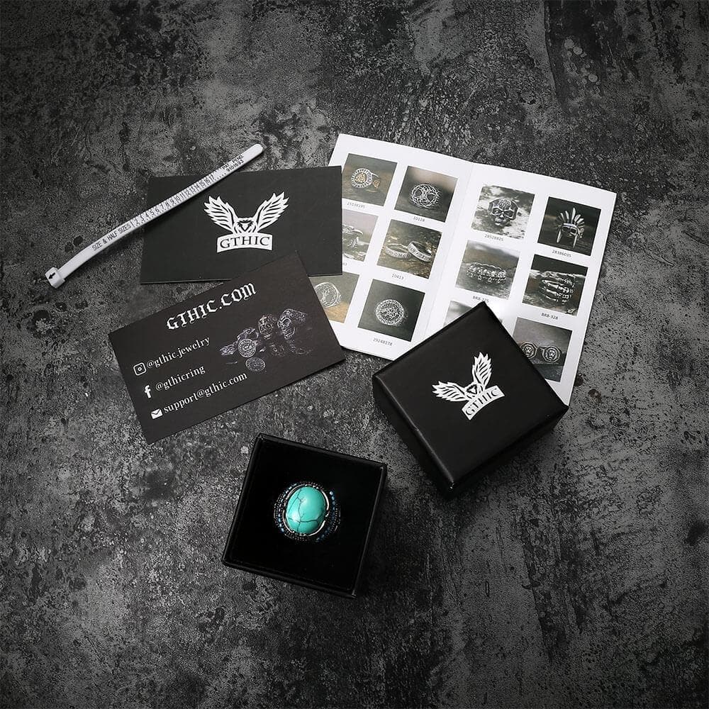 This stainless steel ring is exactly what you need to complete your accessory look. The ring with beautiful and symmetrical patterns on both sides is inlaid with turquoise, which shows a retro style. It is a comfortable yet masculine ring, one that you will not be disappointed with. Certain to stand out, this unique ring is also designed to stand the test of time. Solid and durable, we provide first-class jewelry that won’t lose its luster over time. Get yours today!
