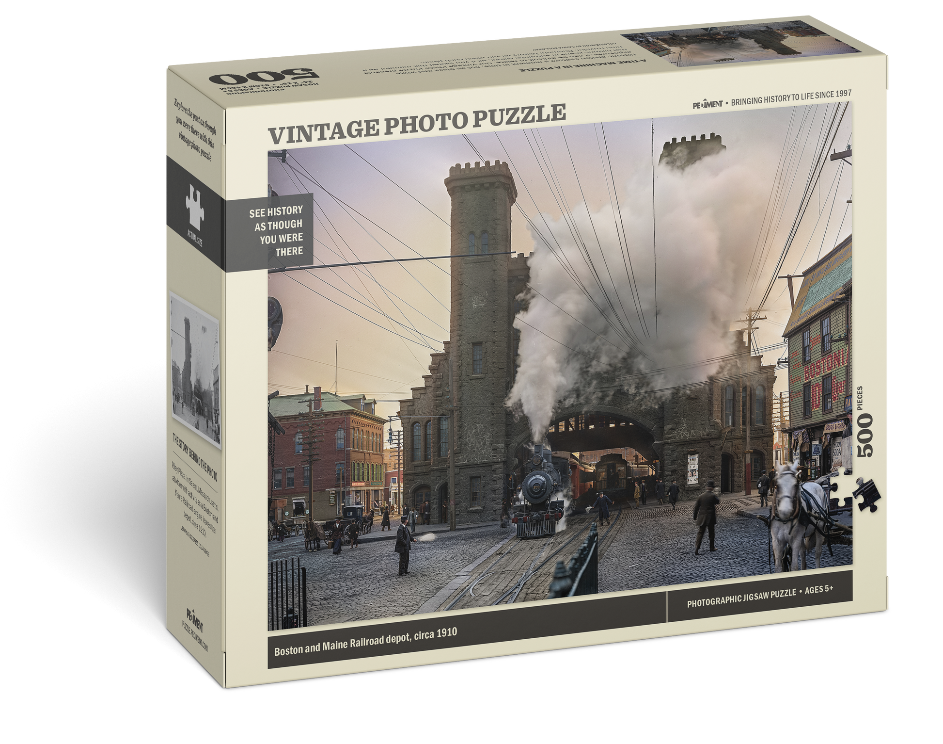 Vintage Photo Puzzle: Boston and Maine Railroad Depot, 1910: 500 Pieces