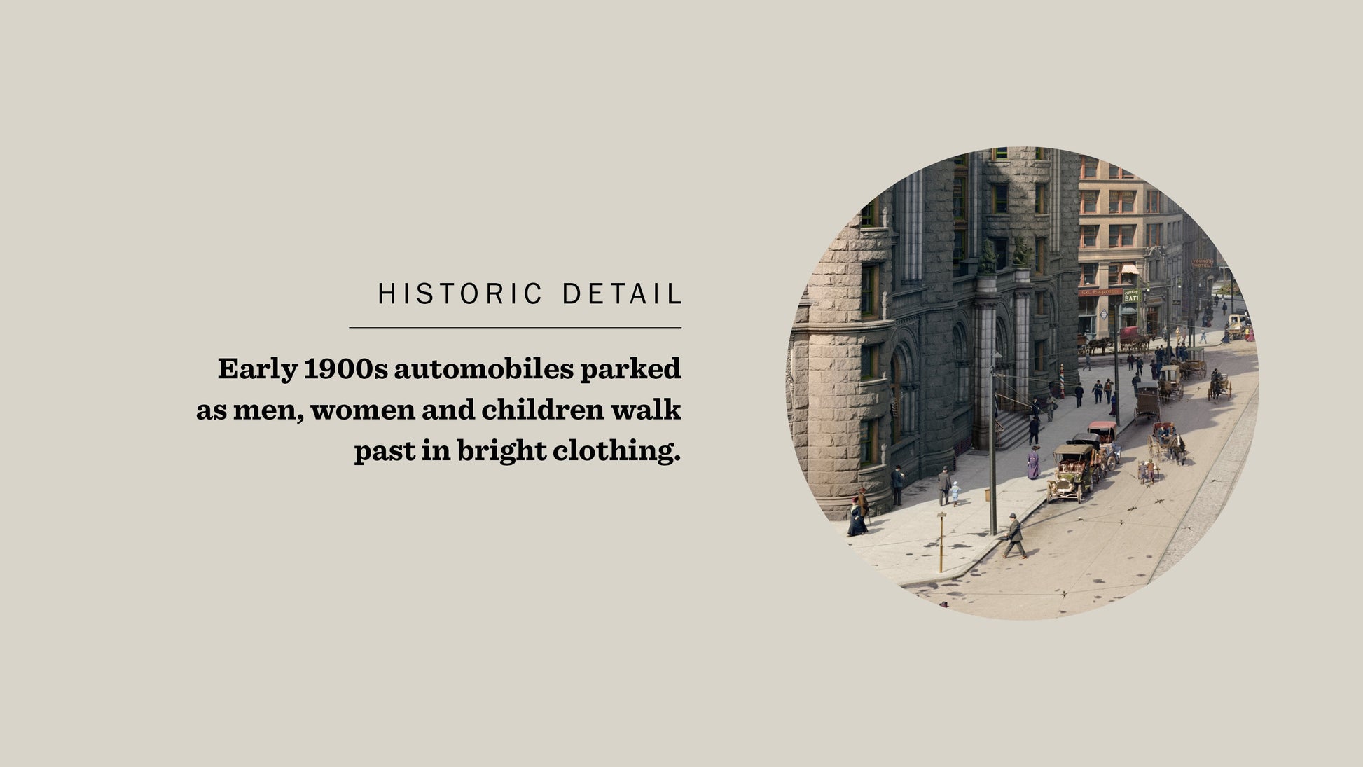 A bustling Niagara Street in Downtown Buffalo, New York, circa 1908. The McKinley Memorial Monument, dedicated in 1907, can be seen in the background. Library of Congress, LC-D4-70294