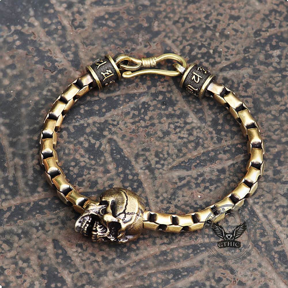 Vintage Skull Brass Box Chain Bracelet