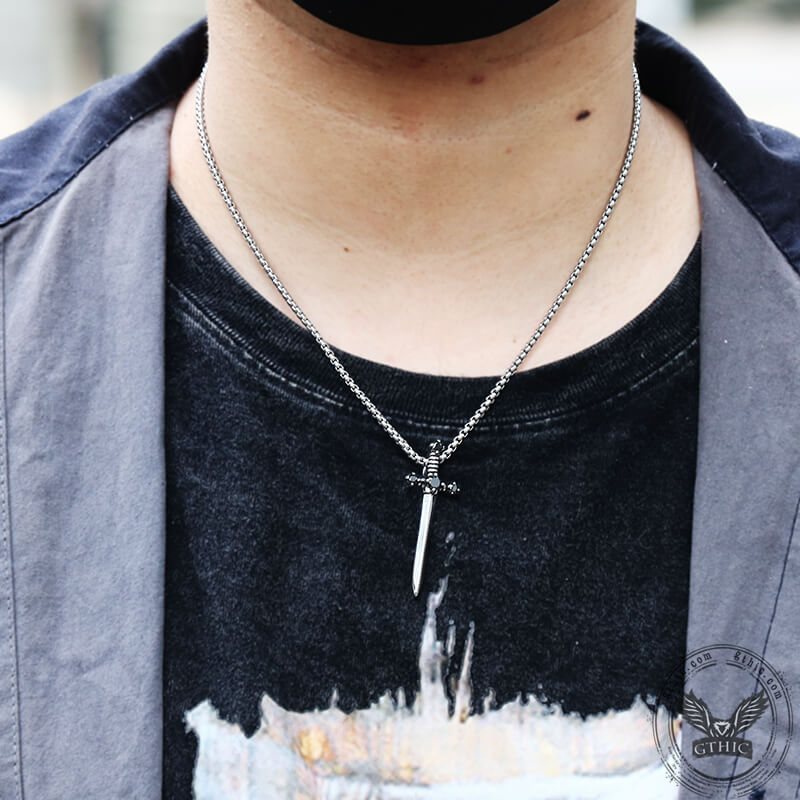 The combination of black stones and retro patterns forms a strong gothic style, which makes everyone who loves gothic accessories crazy. The pendant is in the shape of a sword design, the sword symbolizes power, protection, authority, strength and courage; it is a symbol of chivalry and chivalry. Get yours now!