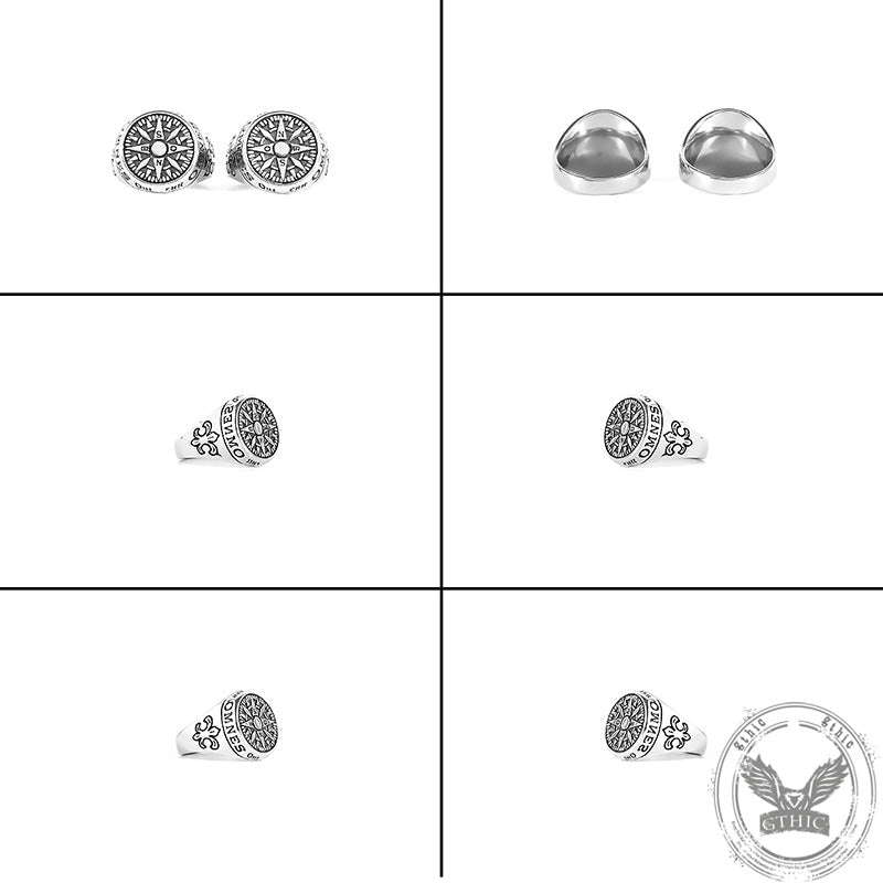 Vintage Viking Nordic Compass Stainless Steel Marine Ring