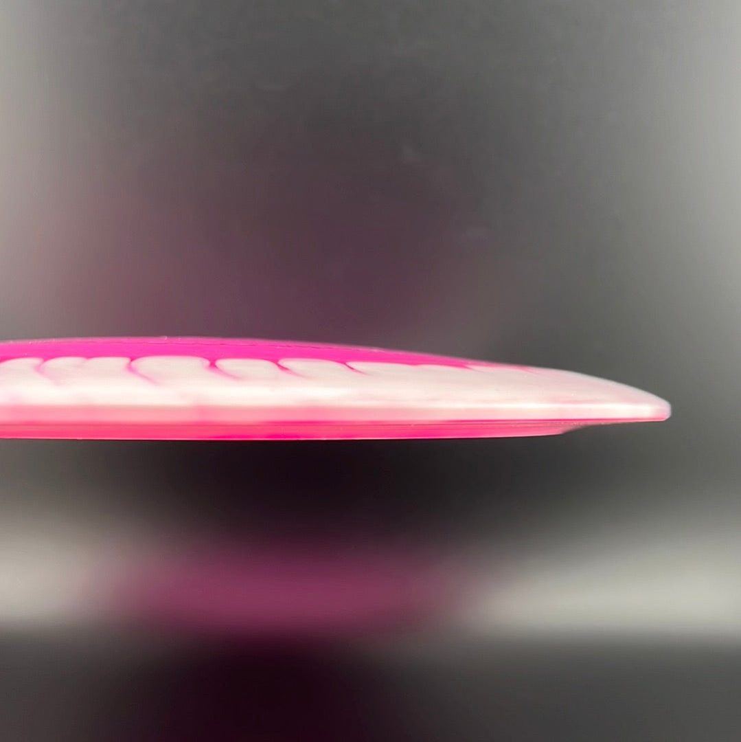 Our exclusive Orbit Effect takes the visual appeal to new heights. Using a spectacular two-color process, each VIP-Ice disc showcases a mesmerizing array of colors, creating a captivating visual that every disc golfer will appreciate. No two orbits are the same, as every disc boasts distinct variations within its design, making each throw truly one-of-a-kind.