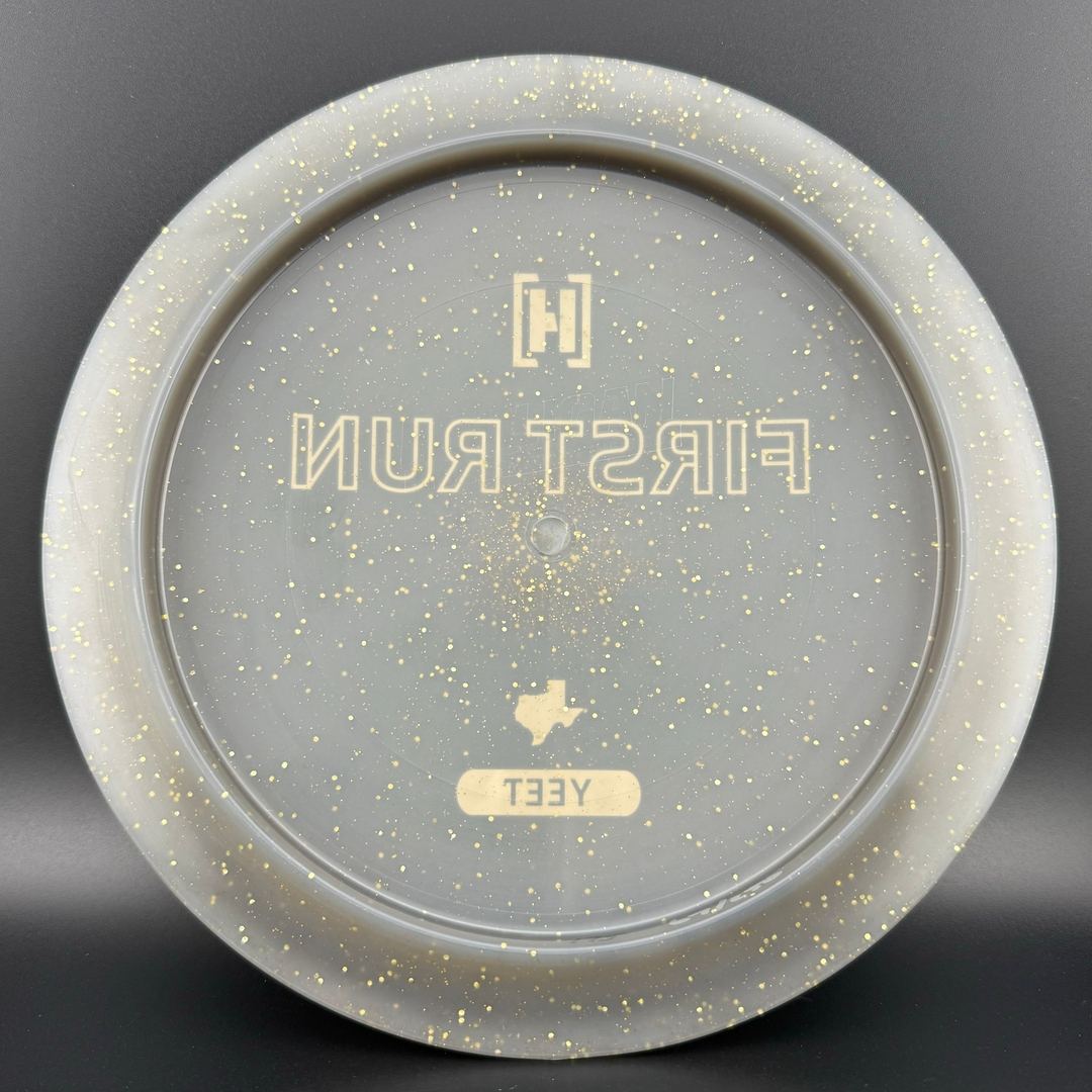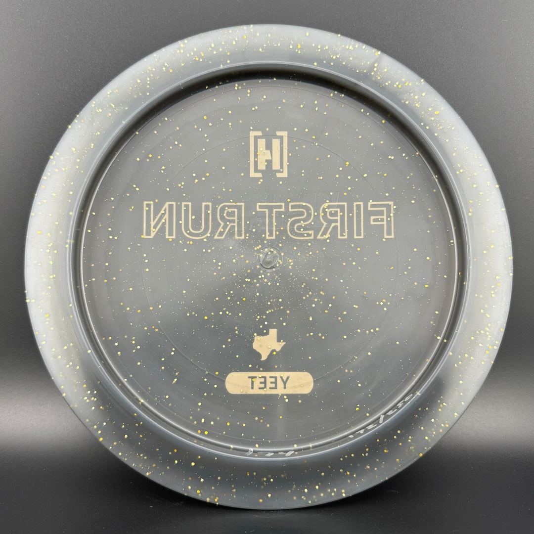 12/5/-1/3 *First run Yeet's!! Black/smokey colors with gold metal flakes! These are nasty! Number out of 250 written on inside rim with it notated after weight on variant below. All have Gold Holo Foil.
