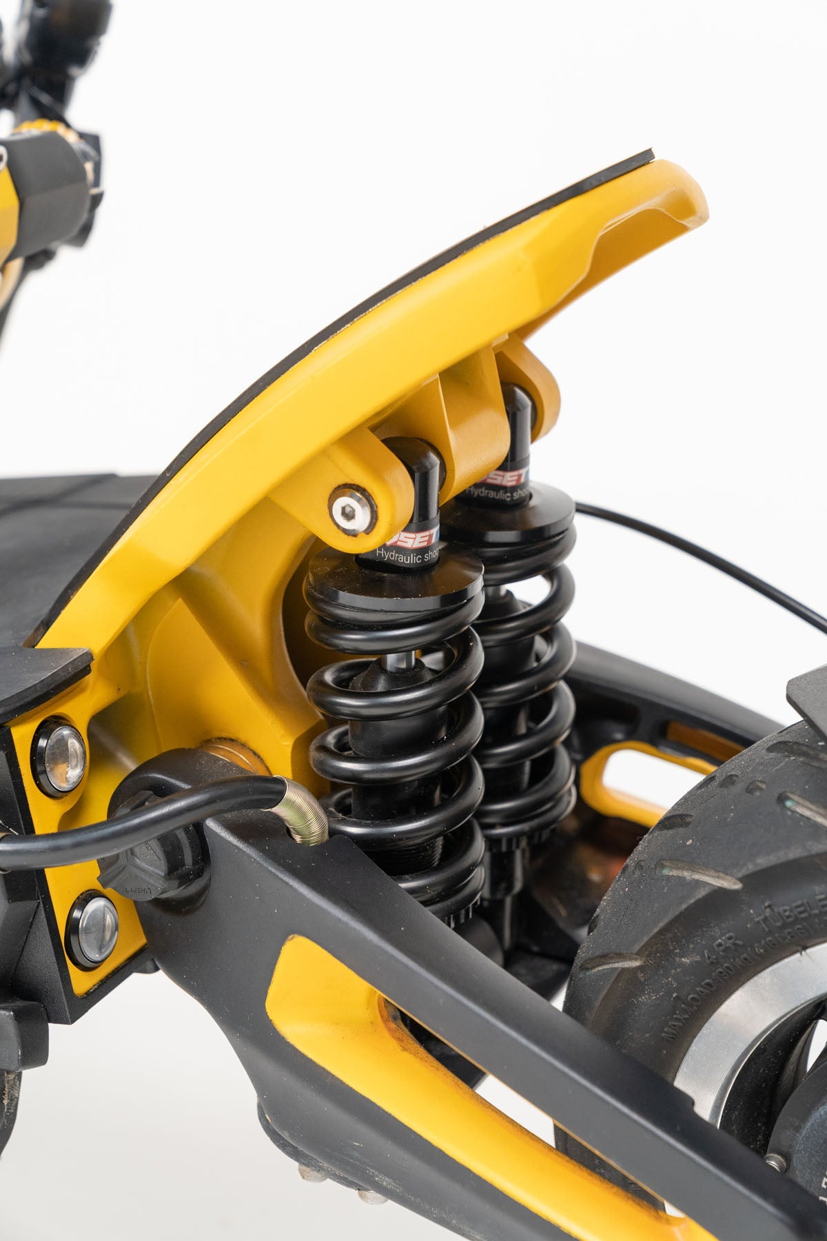 Safety on any motorized vehicle is a big concern and the 11+ is prepared. Coming with a powerful e-horn by stock, incredibly bright integrated LED headlight, and front & rear turn signals the 11+ is always seen and heard. And for braking, the 11+ uses hydraulic brakes for the front and rear.