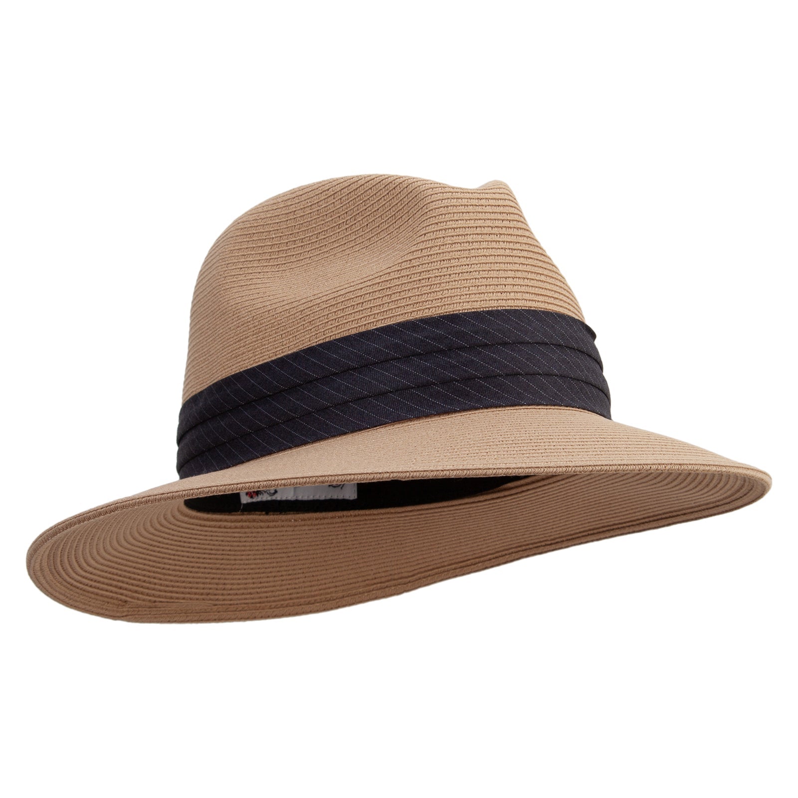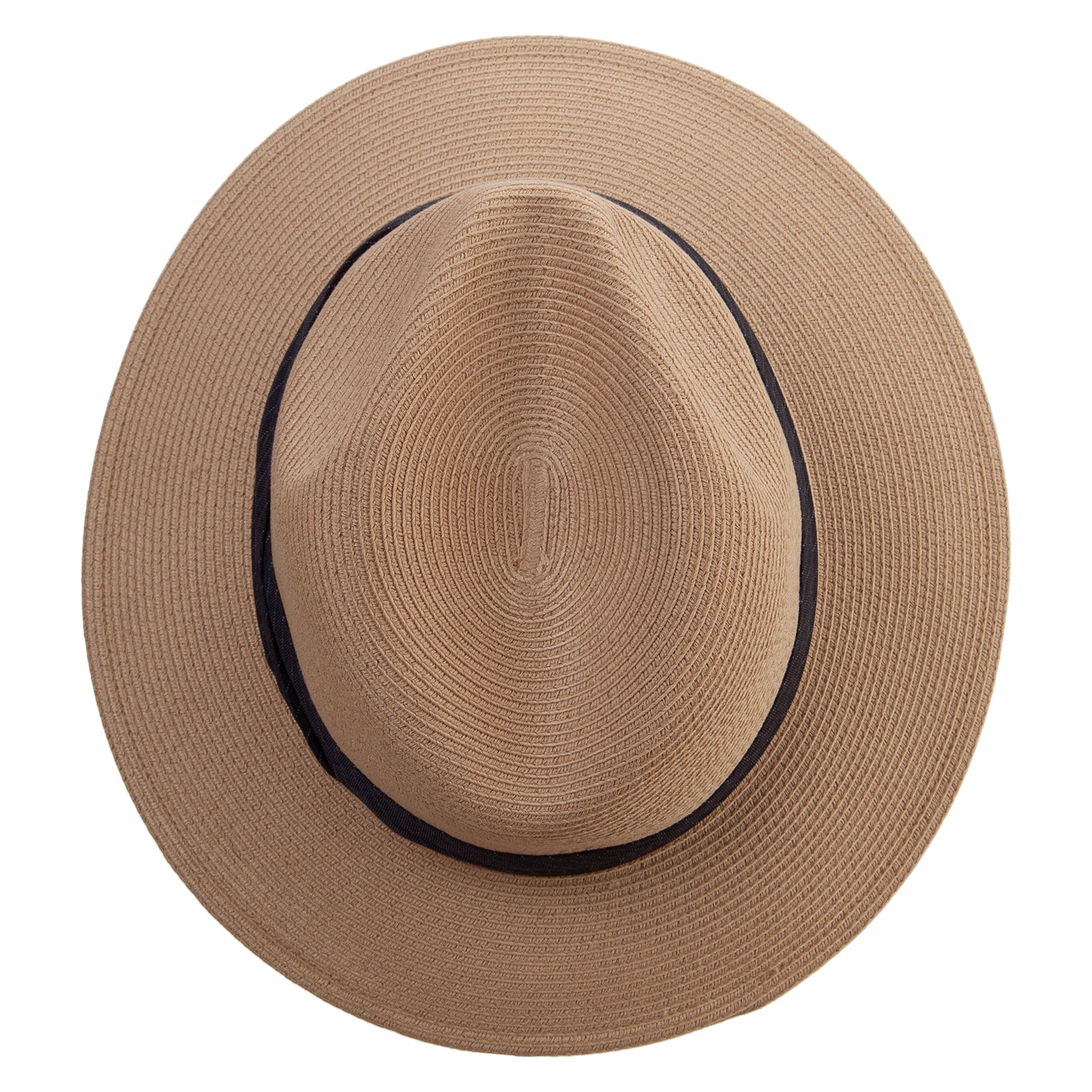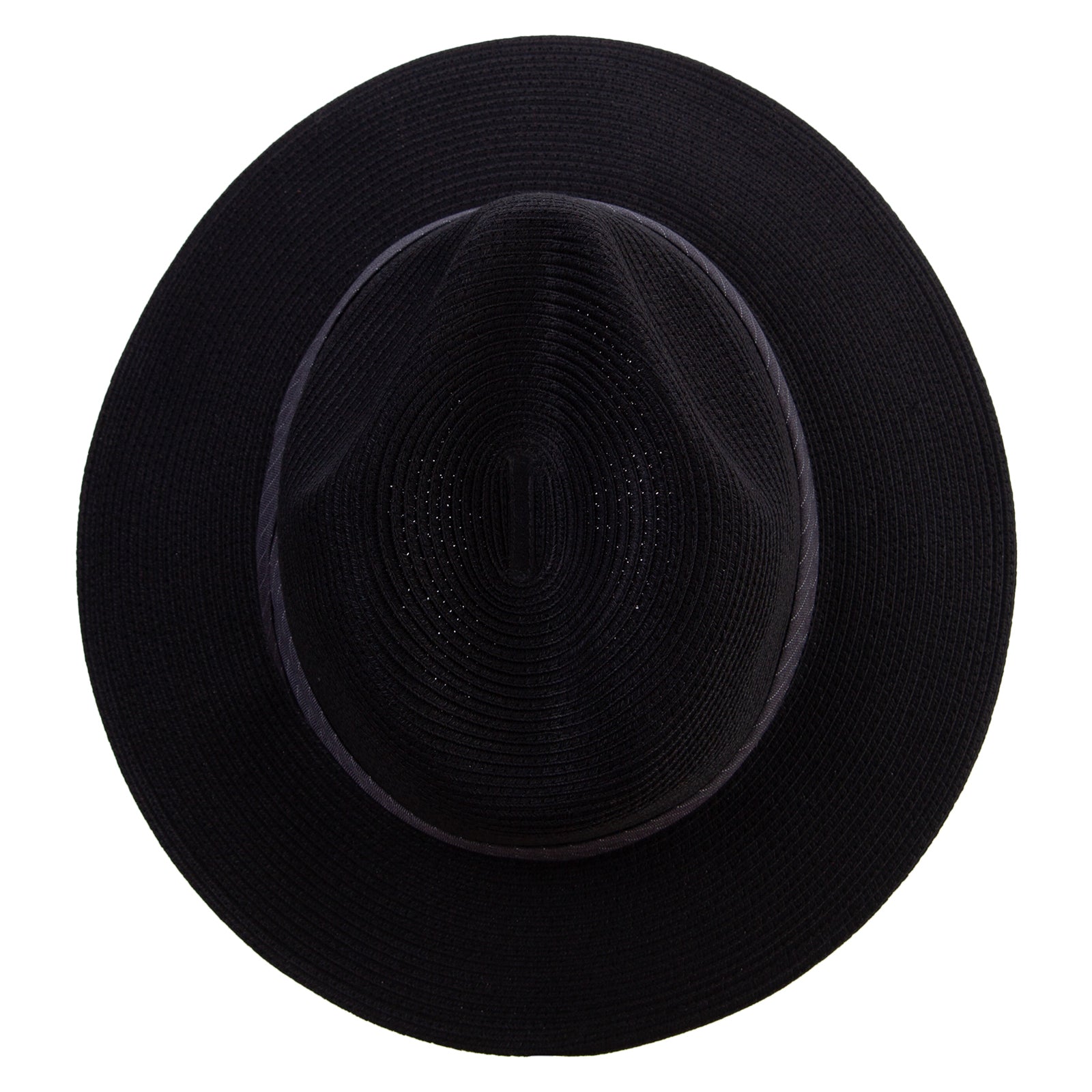 Detailed Features, Brim measures 3 inches, pinch top, decorative band around the crown
