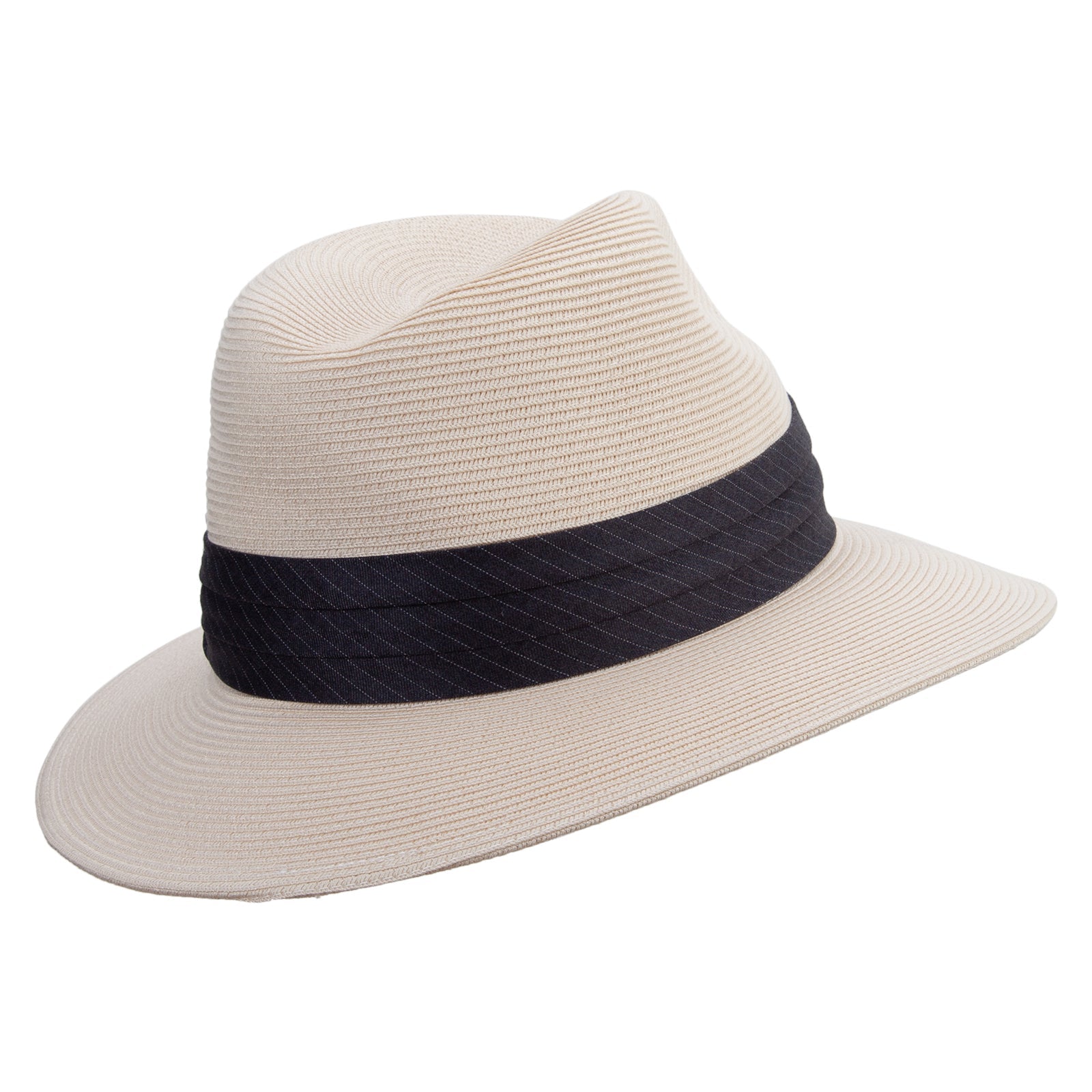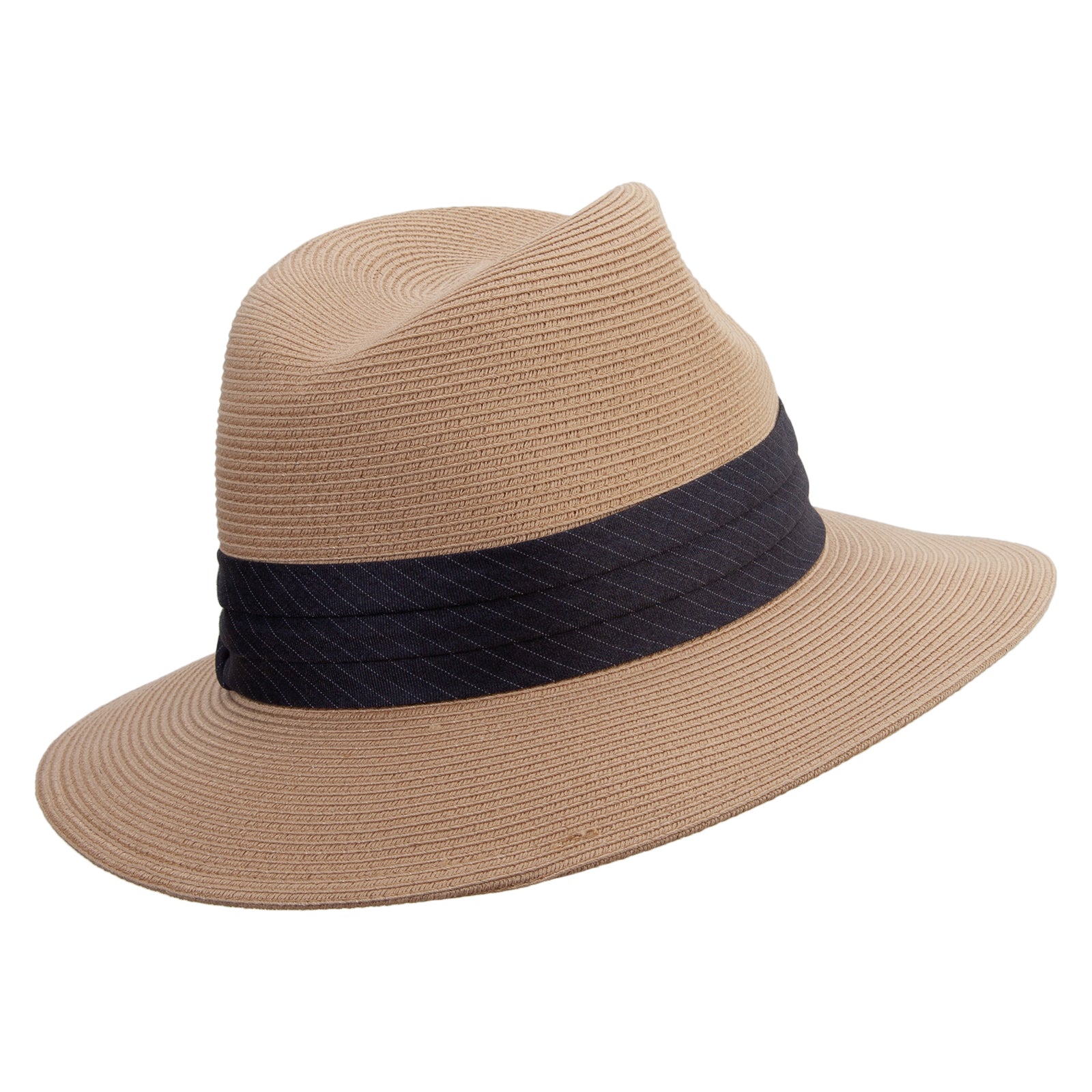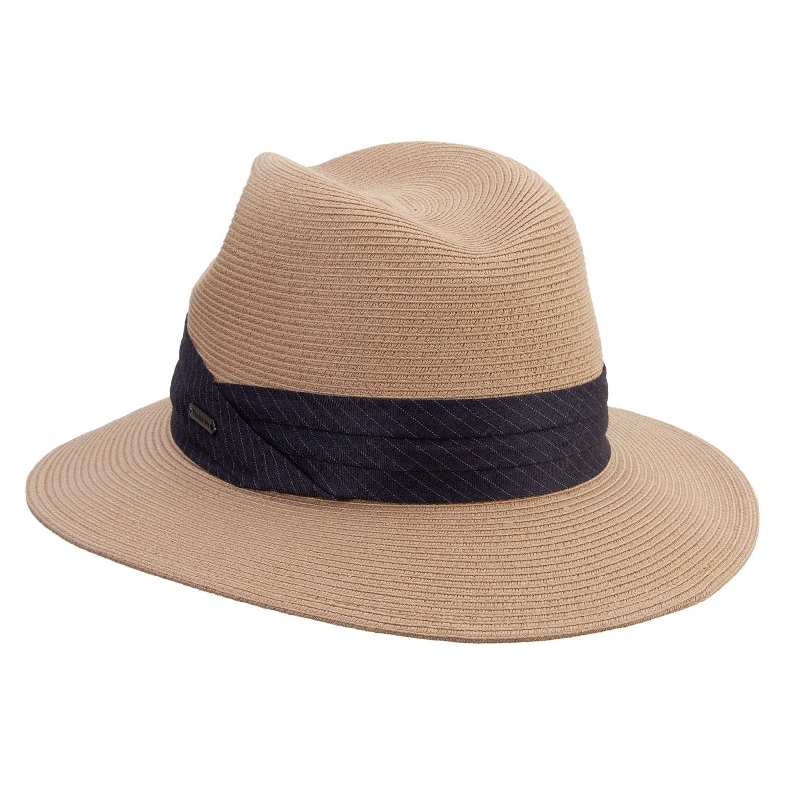Detailed Features, Brim measures 3 inches, pinch top, decorative band around the crown