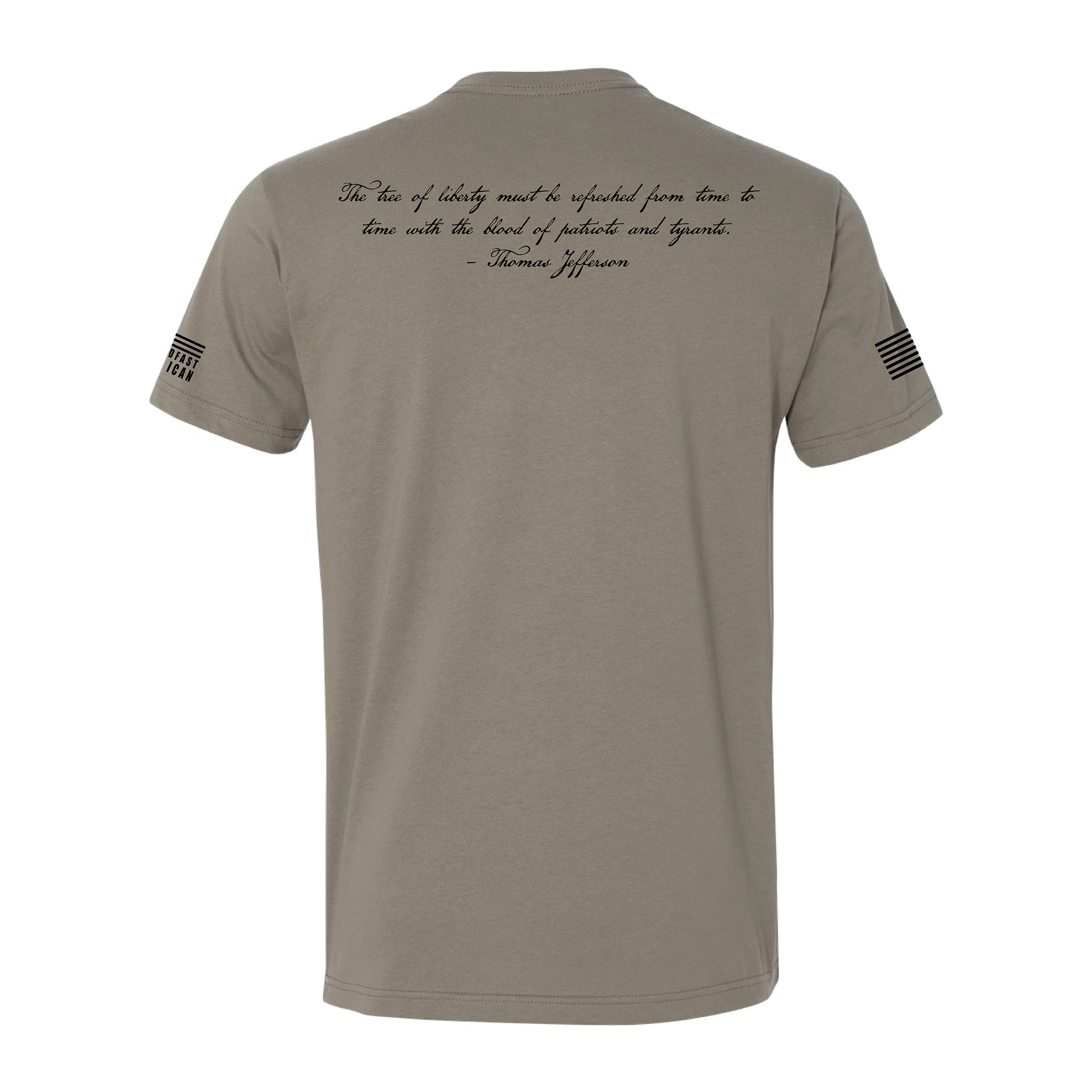 - Back print: Thomas Jefferson’s “Tree of Liberty” quote makes a powerful statement on the back of the shirt