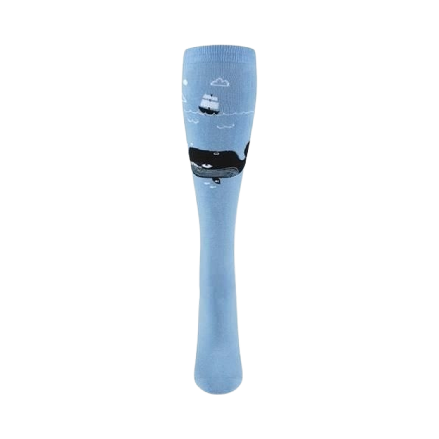 When we tell you that you could be up to your knees in whale-filled waters, you might think it's a whale of a tale. But not to worry - no big fish here! Just a cute pair of socks that will have you daydreaming of afternoons napping in a canoe, or maybe fixing to catch the next Moby Dick. Hope you've got strong arms!