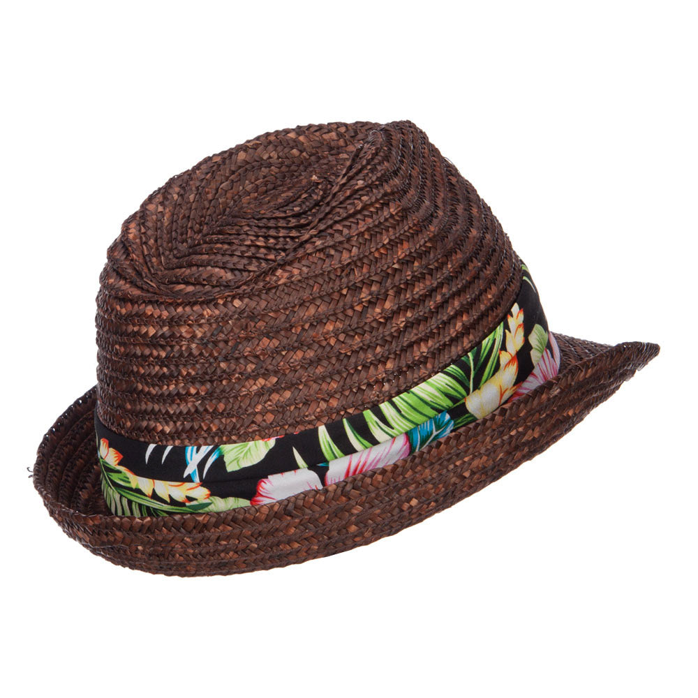 Wheat Braid Floral Band Straw Fedora