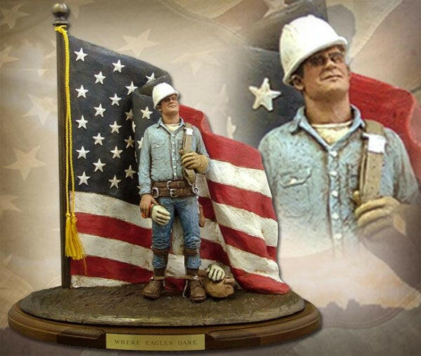This lineman has the courage to climb “Where Eagles Dare”! Celebrate the American heroes that power our homes and lives with this handmade sculpture by Michael Garman. Handmade to order. (plaque not included).
