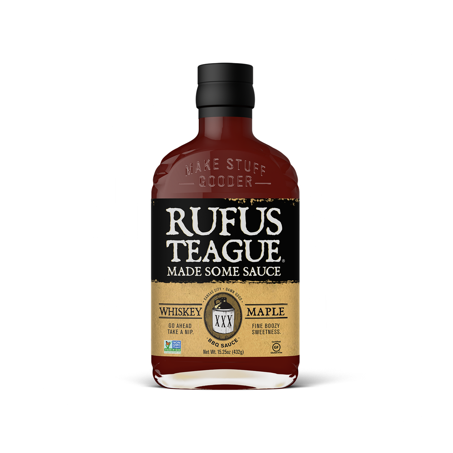 This is the real deal, not some cheap knockoff. As with all Rufus Teague sauces, we cook them longer, so they are less watery, and the flavor is more intense. Made with the finest natural ingredients, Whiskey Maple has a classic tomato-base and is sweetened with real sugar and molasses for a deep and distinguished taste. So, make your food happy and remember, “Good sauce makes bad barbecue good and good barbecue gooder.”