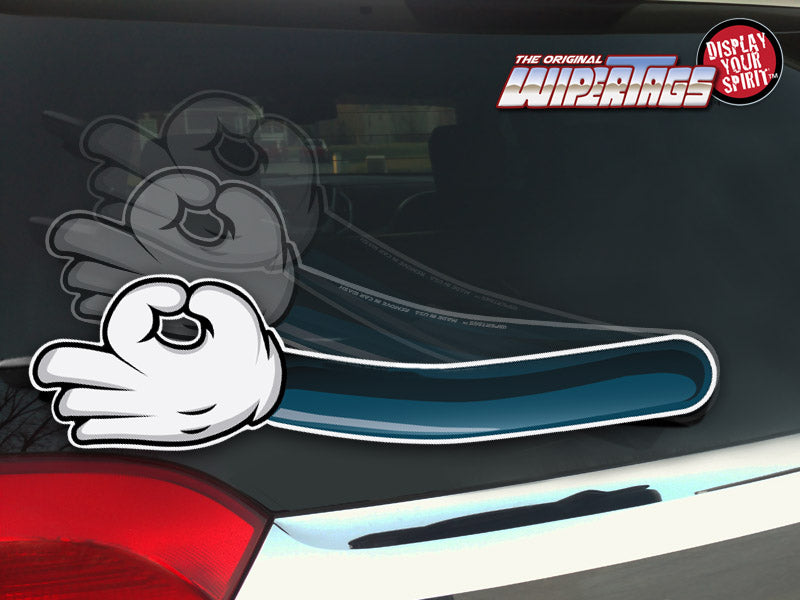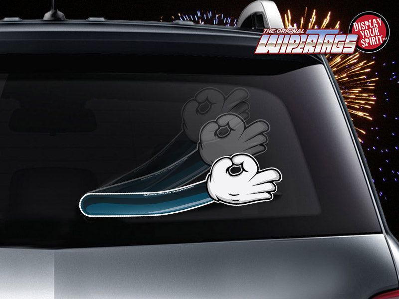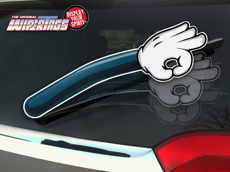 Made you look! Play the circle game with your vehicle rear wiper or just wave and let drivers know you're "OKAY." Universal size fits most rear wipers. Double sided (reversible).
