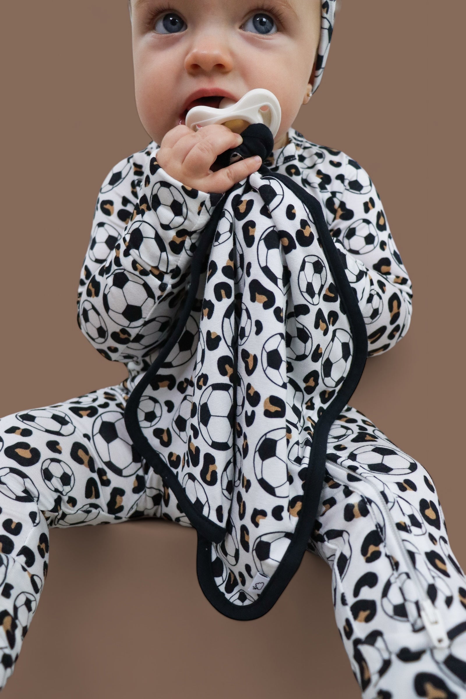 The WILD GOALS DREAM LOVEY is the perfect companion for your little soccer fan! With its soft and cuddly design, it's perfect for nap time and on-the-go soothing. Plus, it attaches to a pacifier for added comfort during game day excitement! Get ready for the season with this must-have lovey.