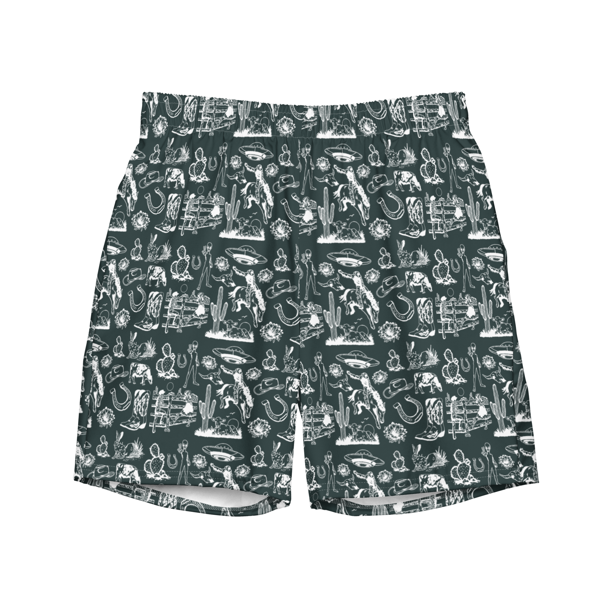 Wild Ride: Broncs, UFOs, and Cactus Skies Swim Trunks