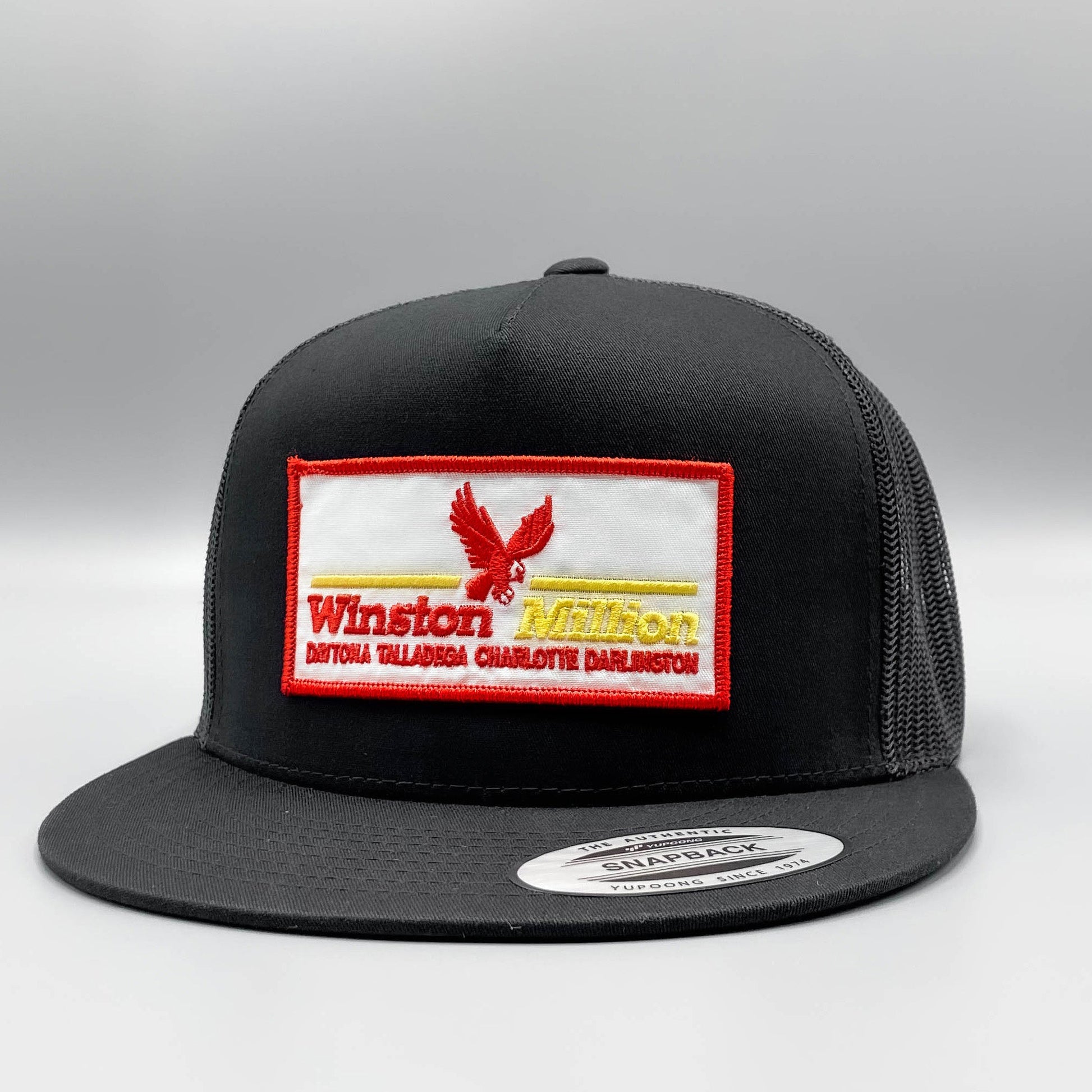 This listing is for a Winston Million Series NASCAR embroidered patch on one of our best-selling (and best fitting) trucker hats -- a black Yupoong 6006 Classic mesh snapback trucker hat.
