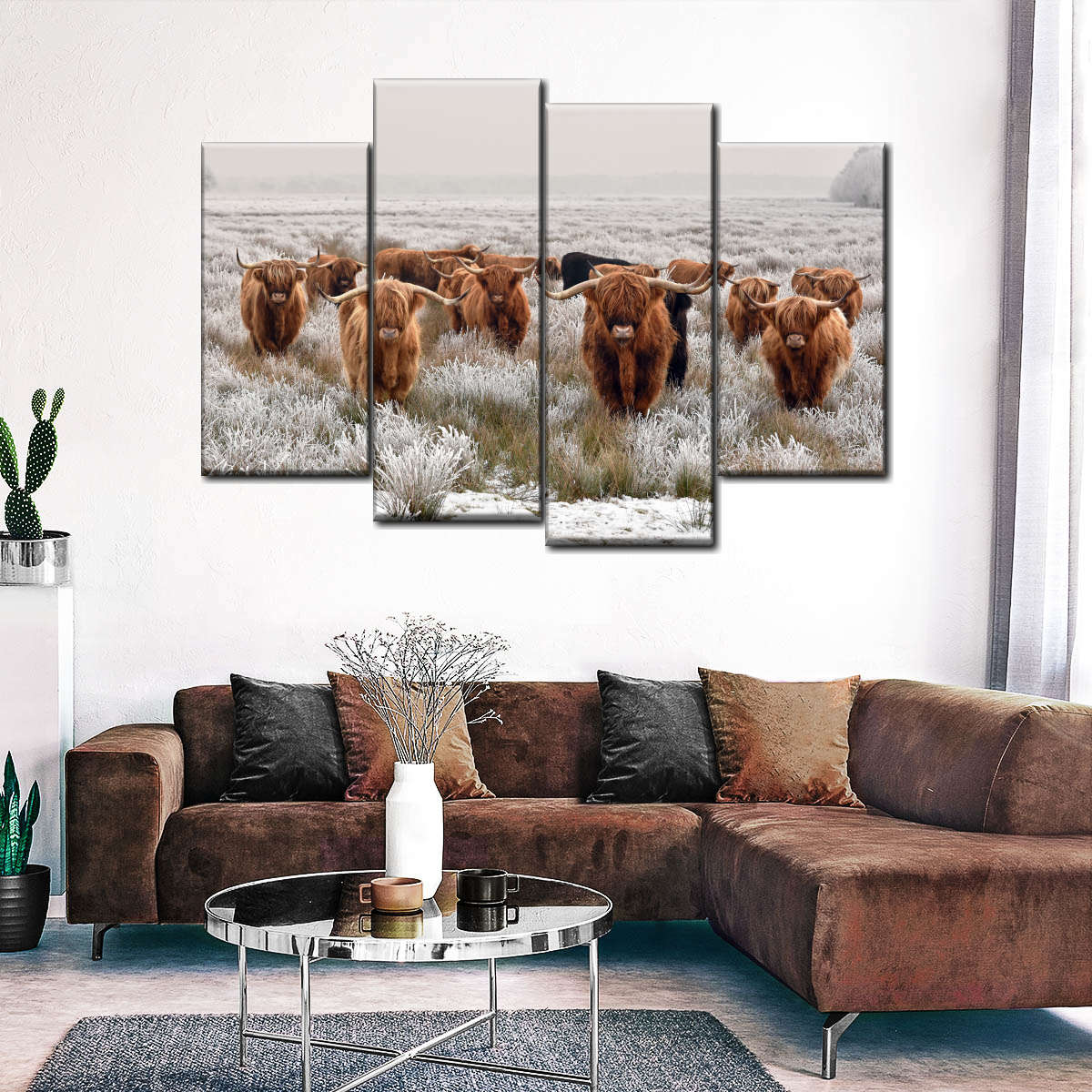 Winter Highland Cattle Multi Panel Canvas Wall Art will easily beautify any room. Bring this stunning art of your favorite animal into your home to set a positive tone to the entire space.