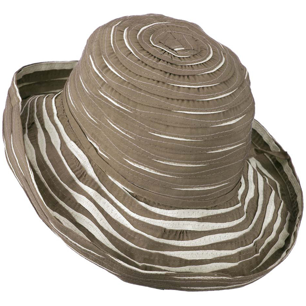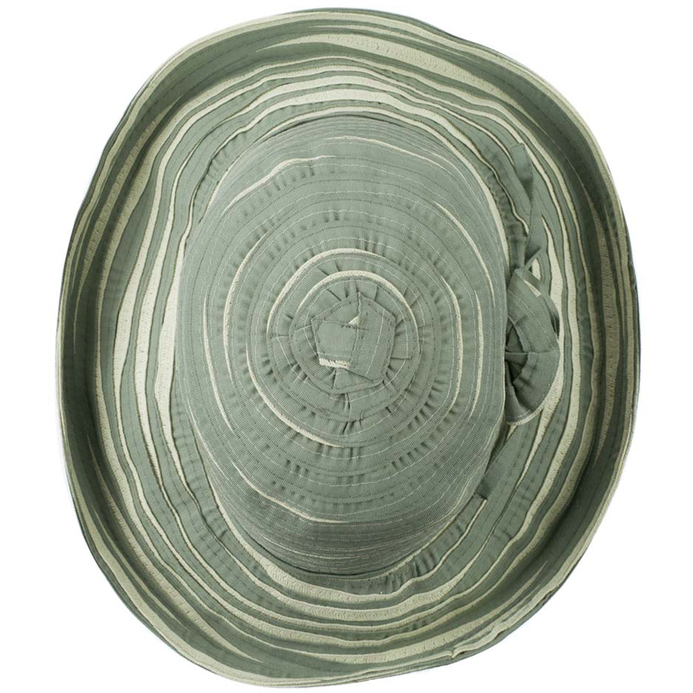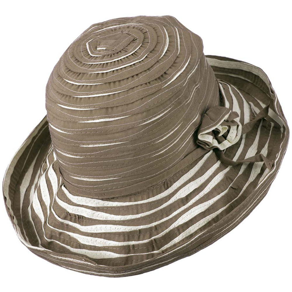 Perfect for Spring, Women's Offset Spiral Sewn Ribbon Hat, perfect for spring wear.