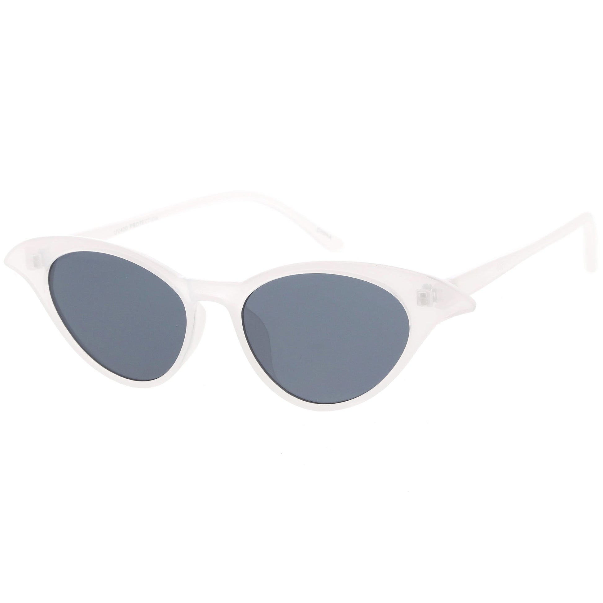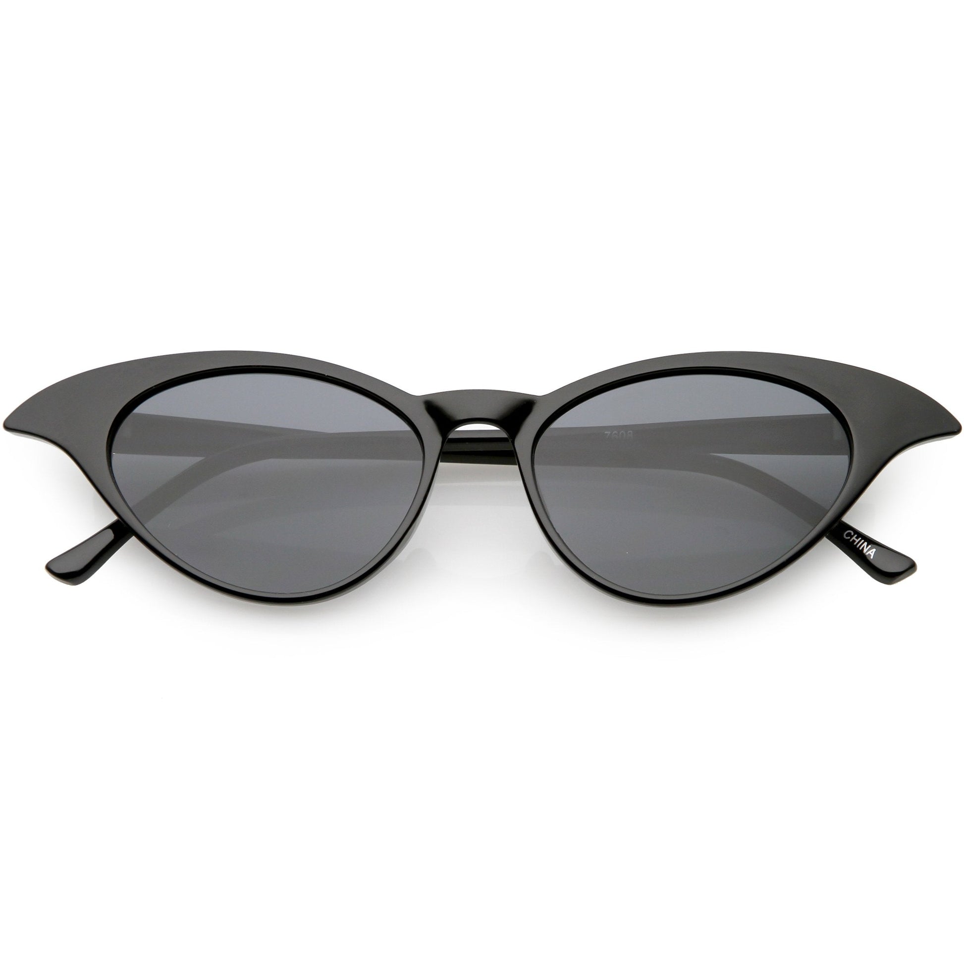 - Great for everyday wear these retro cat eye sunglasses are designed with an exaggerated cat eye frame. Neutral colored lenses make them versatile, while slim arms give it a sleek effect. Made with a plastic based frame, reinforced metal hinges, and 100% UV protected lenses.