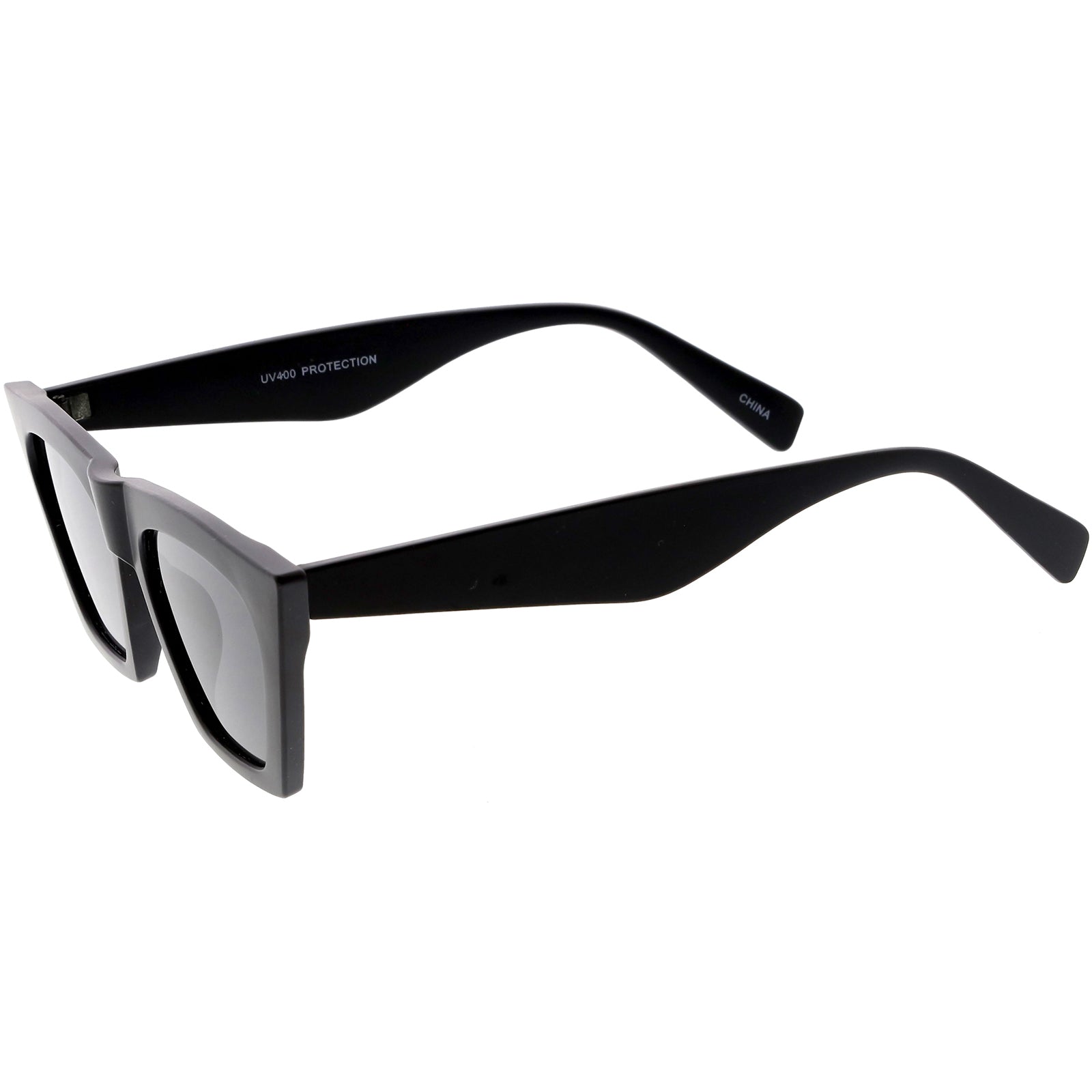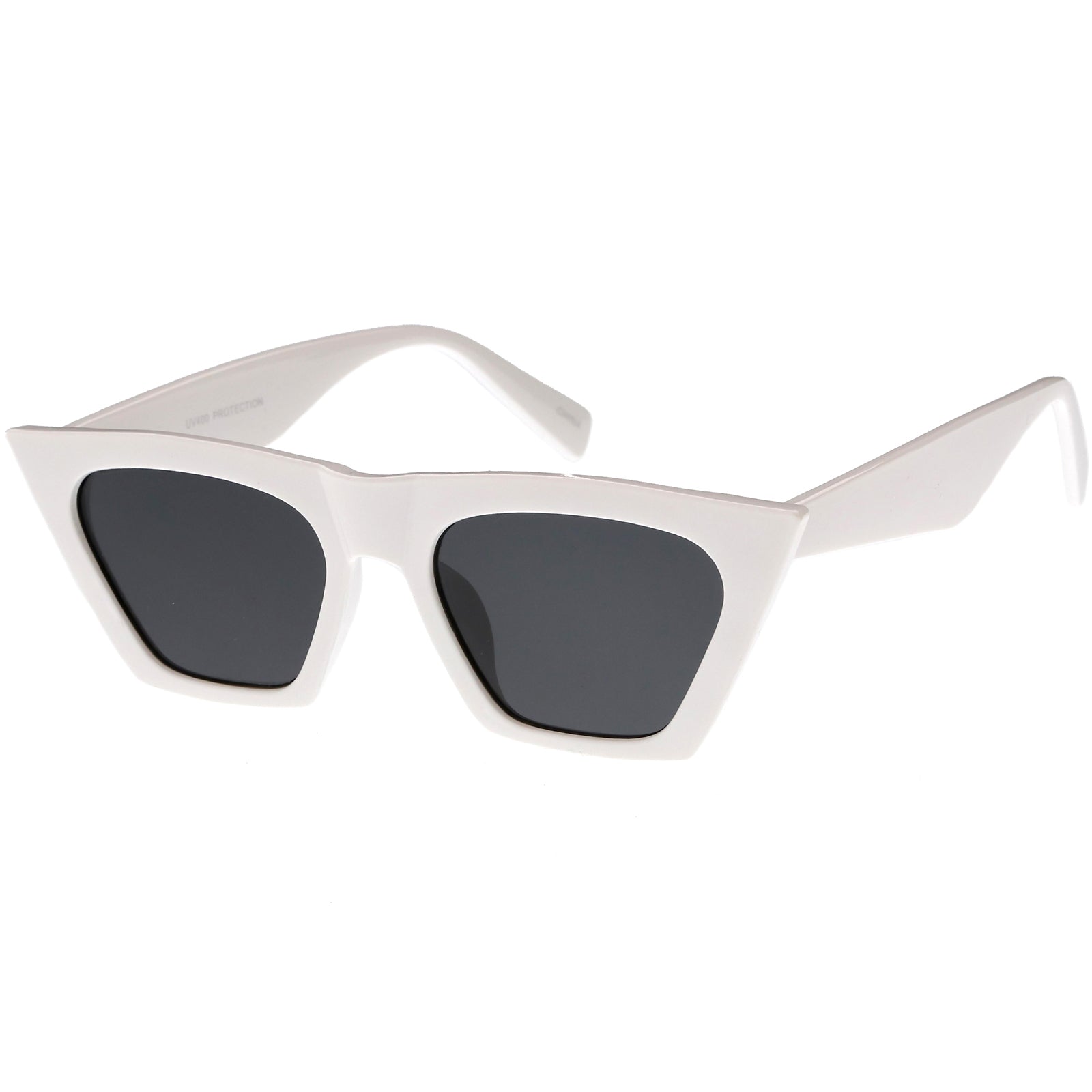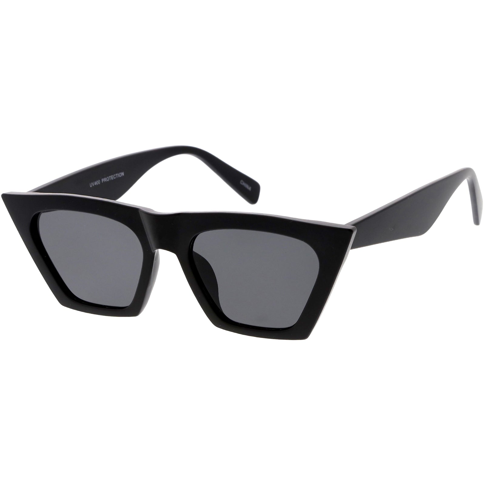 - Add an edgy touch to your outfits with these exaggerated cat eye sunglasses! Designed with a bold oversize frame featuring sharp angles and wide arms, these cat eye frames offer a stand out look that are sure to catch everyone's attention. Complete with neutral colored square lenses that make them great for everyday wear, these cat eye sunglasses are finished with stylishly wide arms. Made with a plastic based frame, reinforced metal hinges, and 100% UV protected lenses.