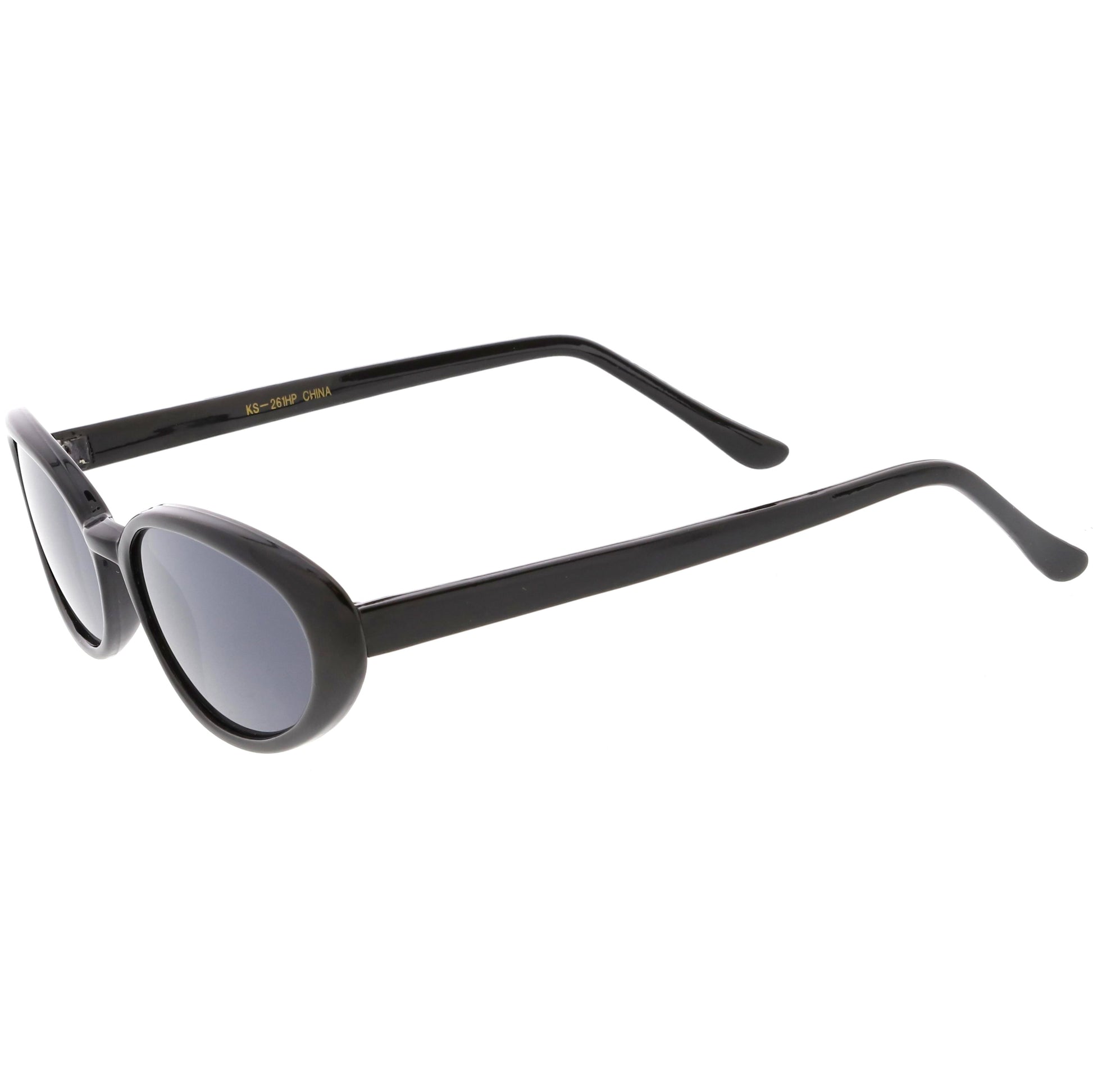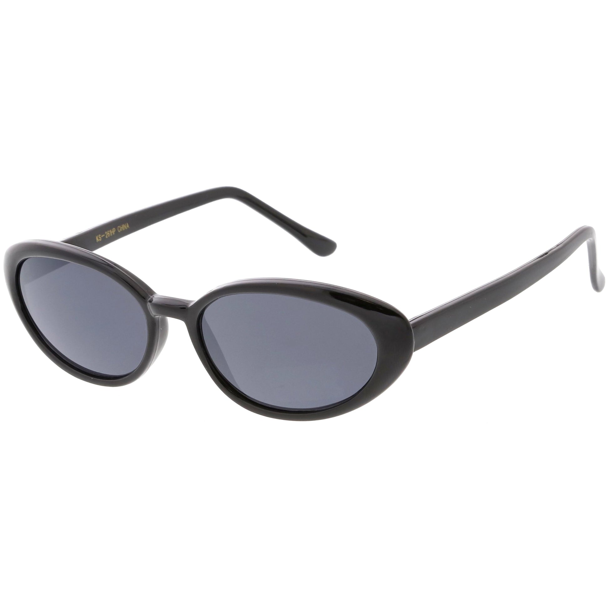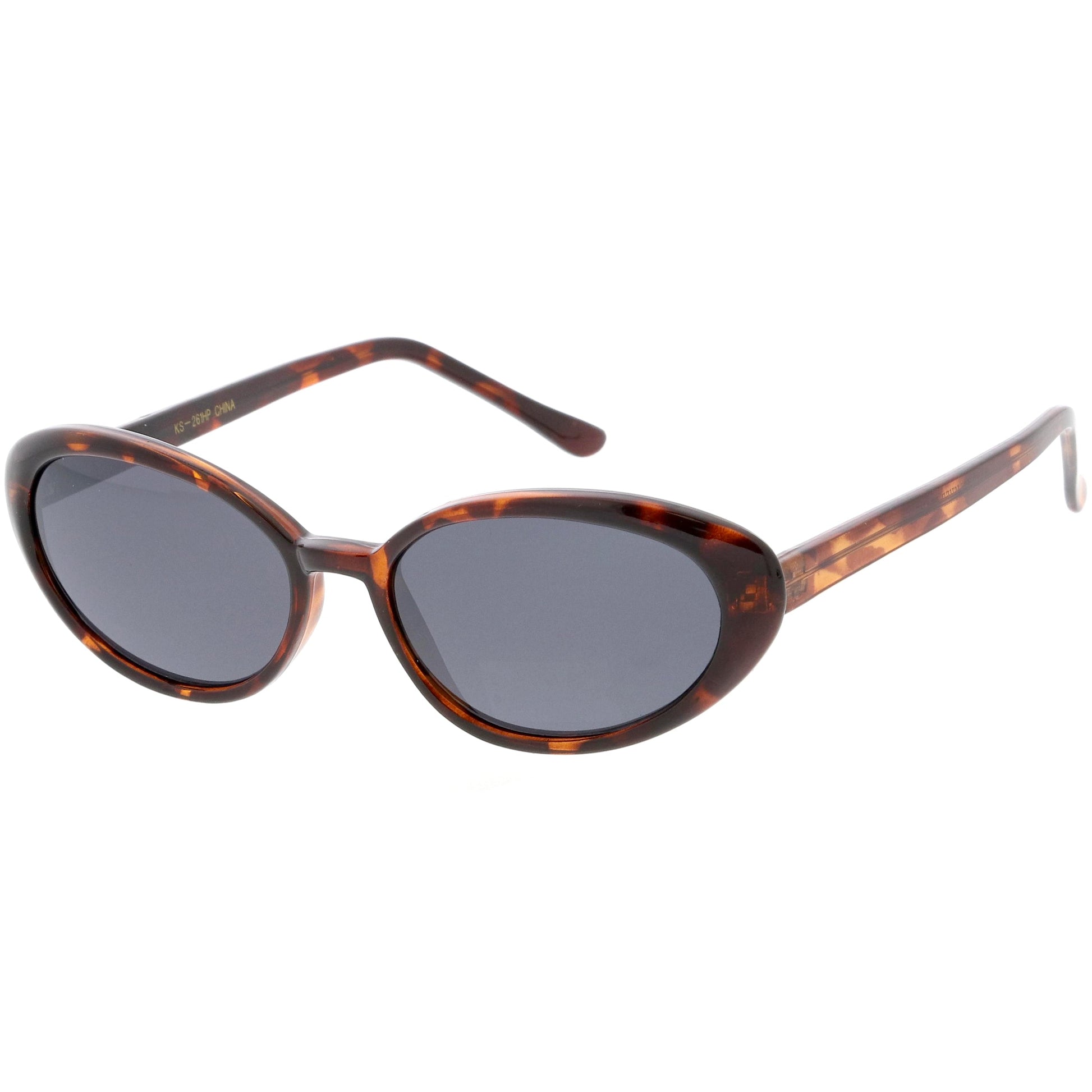 - Complete your summer and festival outfits with these true vintage oval sunglasses. Exquisitely crafted with neutral colored frames and tapered arms, these oval sunglasses are accented with neutral colored mirror lenses for a contrasting effect. Perfect for everyday wear, these vintage oval sunglasses are an essential accessory. Made with a plastic based frame, reinforced metal hinges, and 100% UV protected lenses.