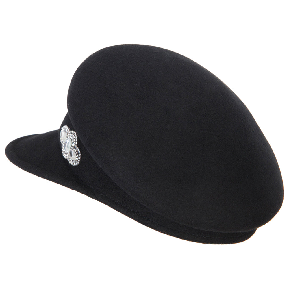 Women's Rhinestone Accent Wide Band Wool Felt Newsboy Cap