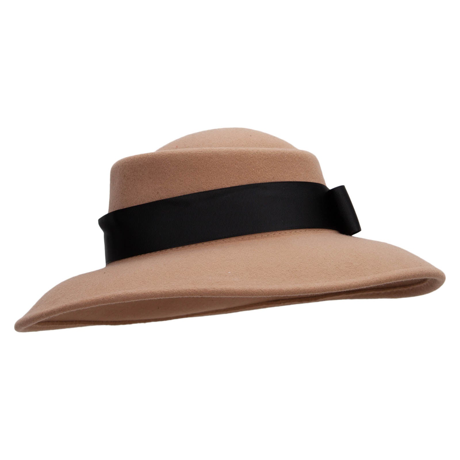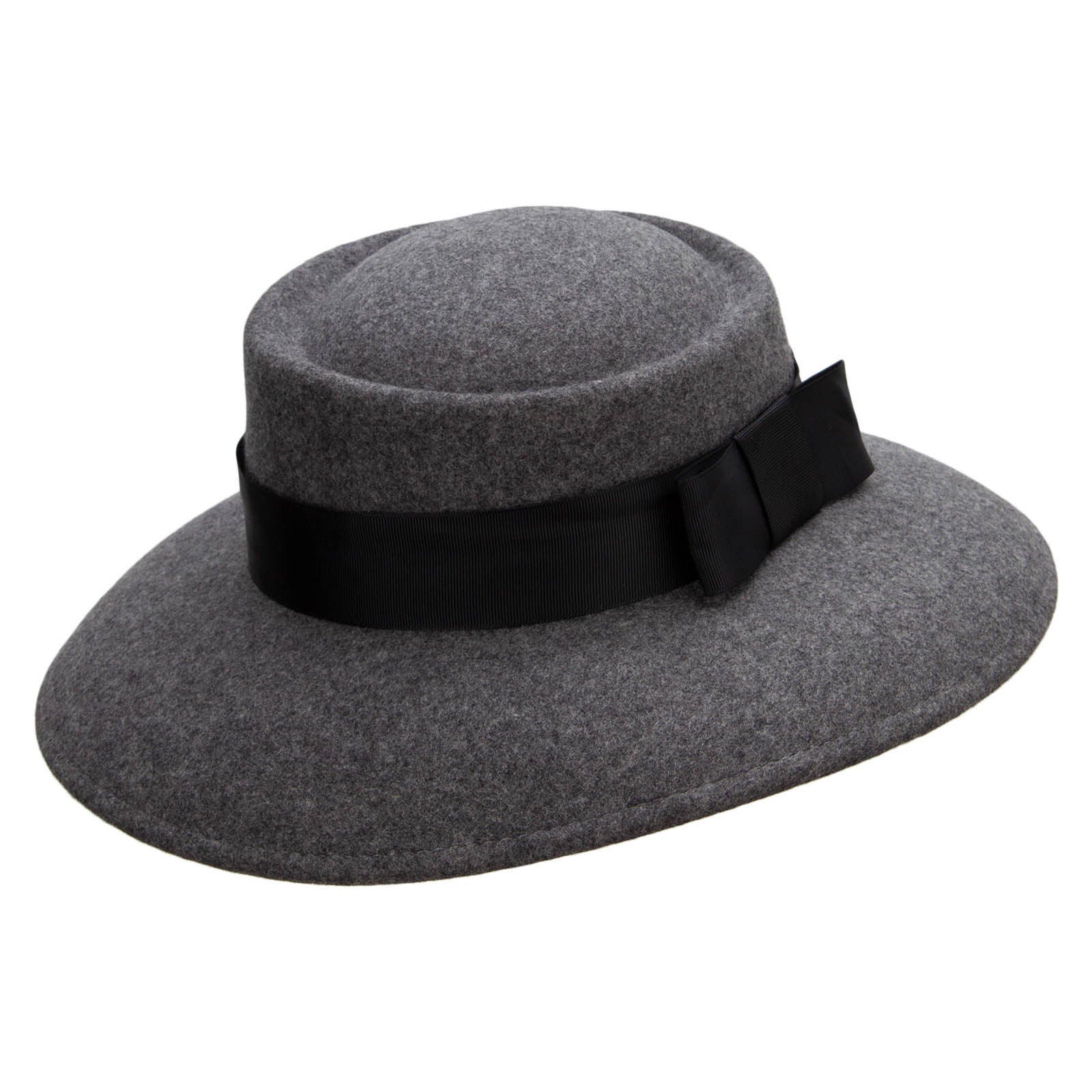 Women's Wool Brass Fox Head Accented Bow Band Gambler Hat