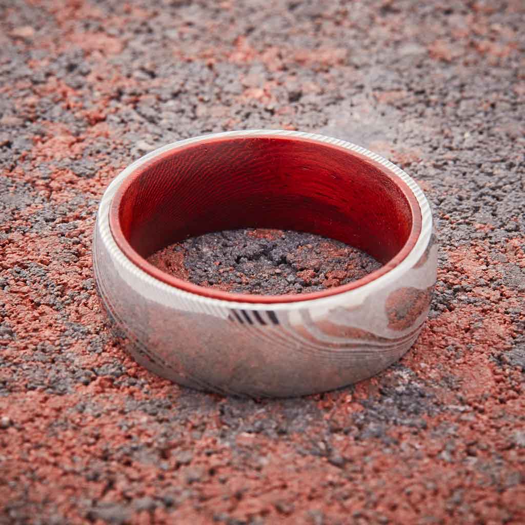 Wood Grain Damascus Steel Ring - Red Sandalwood