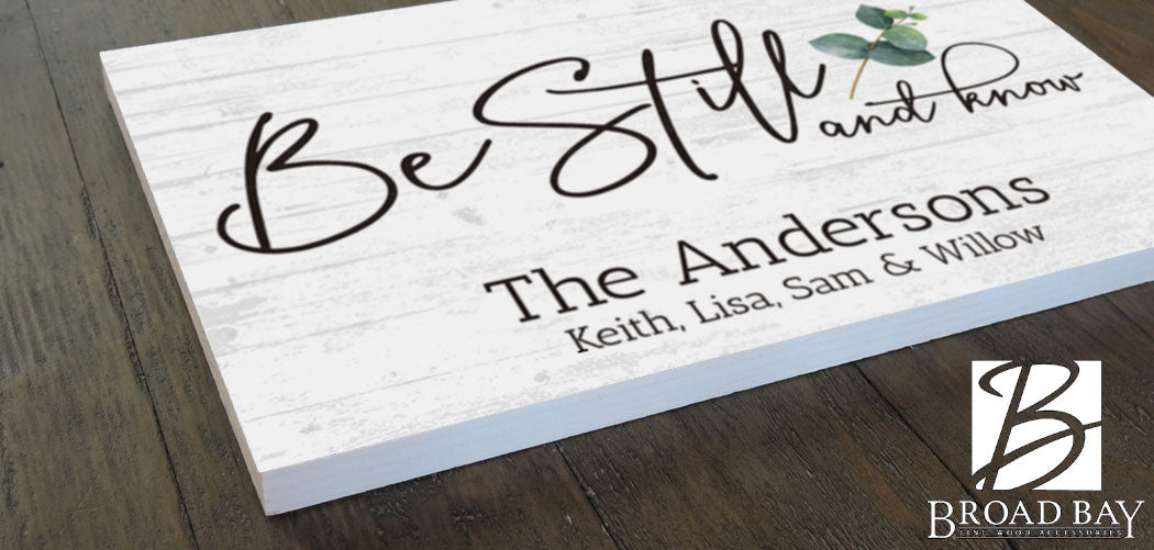 This solid wood fBe Still and Know Bible Verse Sign adds the perfect inspirational family touch to any room in your home. Whether displayed as a centerpiece or supporting decor, this solid wood Be Still and Know Bible Verse Sign is a great way to fill a blank space on your wall or shelf. Personalized with the family name and the established date or family members’ names, you create a sentimental piece of farmhouse decor that will be cherished forever. The farmhouse style Be Still and Know Sign is carefully applied to the wood via our unique Frescoprint printing process that creates a premium wood print. Once personalized, the sign looks perfect hanging above a bed, hanging on the living room wall, or sitting on the shelf.