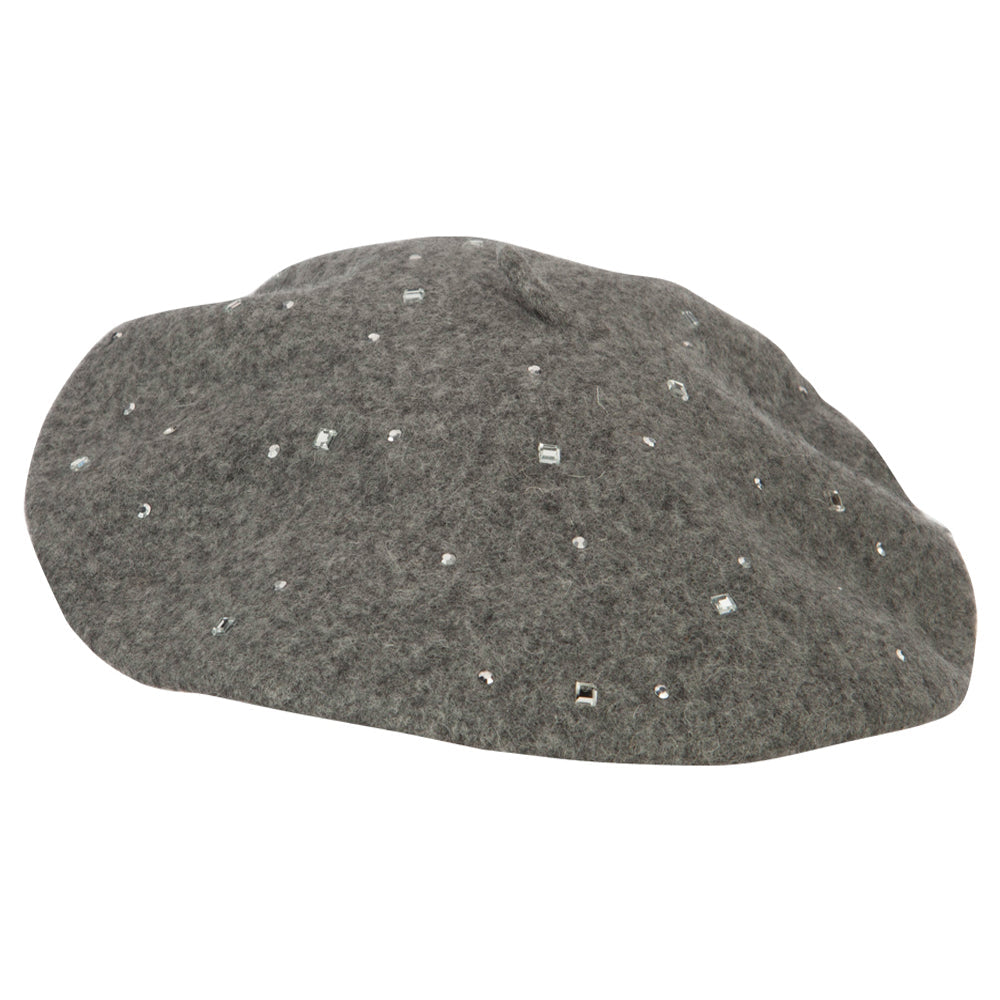 Wool Blend French Beret with Crystal Stonest