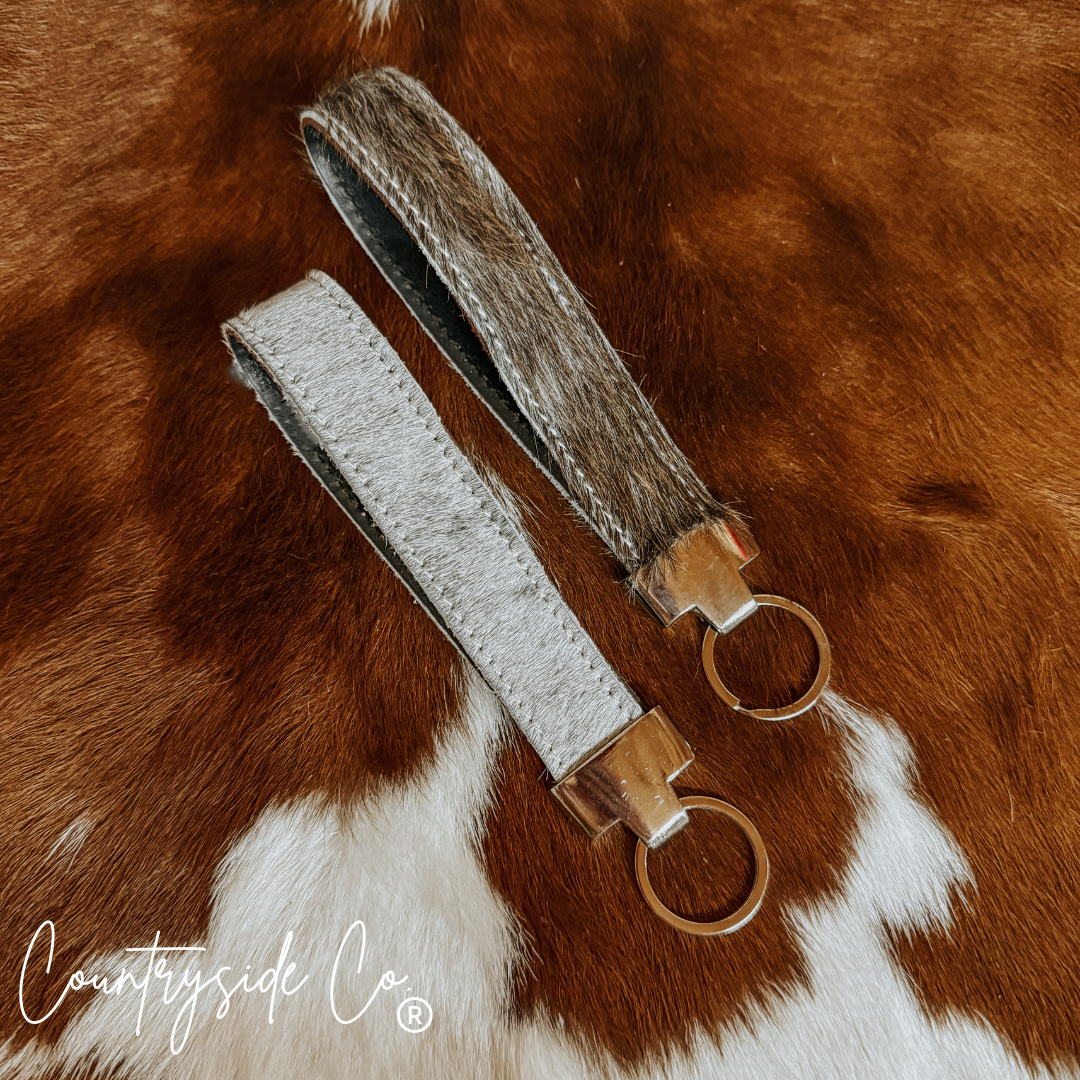 Add a splash of fun to your everyday with this Cowhide Wristlet Keychain, each crafted from a different cowhide for a truly unique look. Its playful patterns and textures make holding your keys a little more exciting and a lot more stylish.