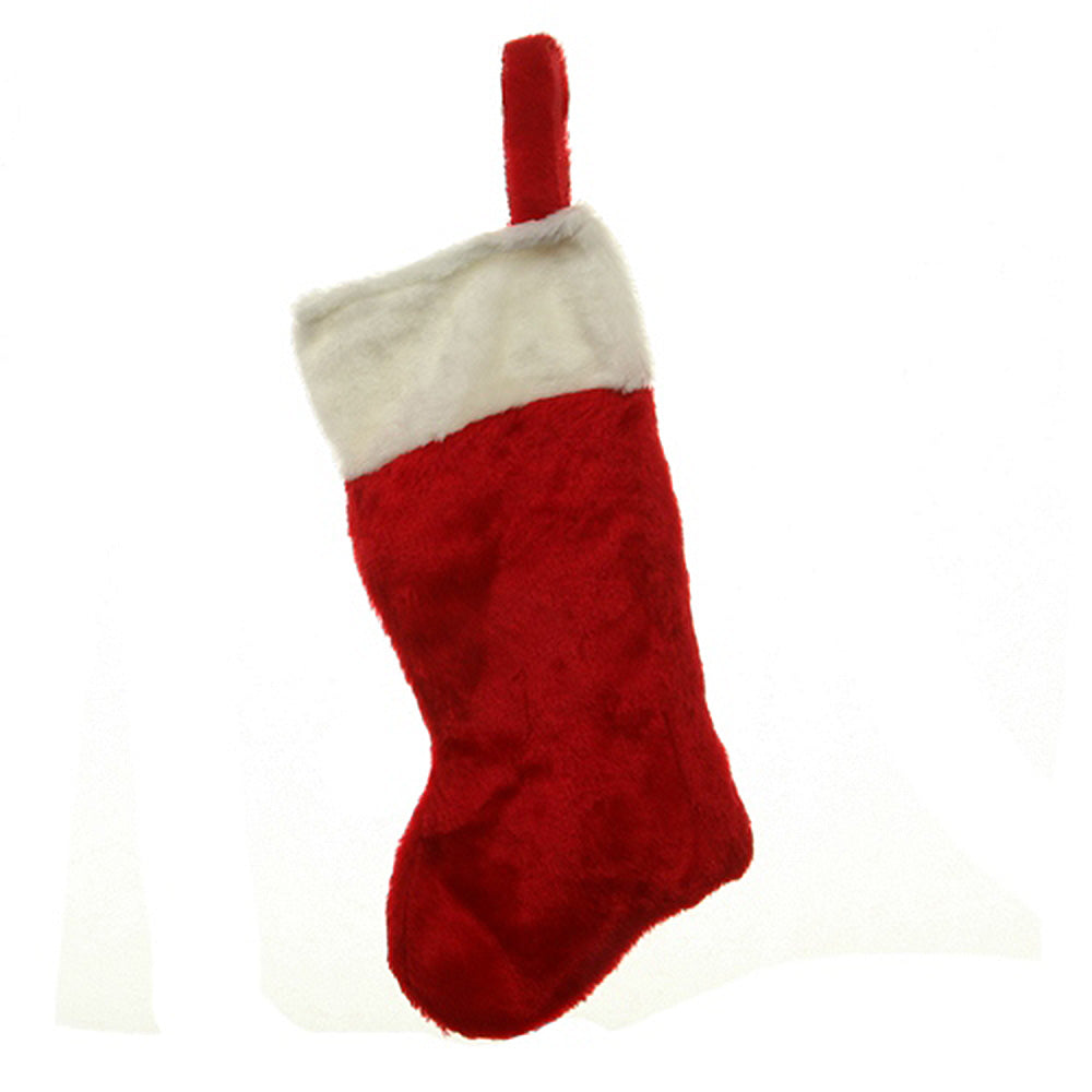 Vibrant Colors, This traditional Santa stocking is a festive red with white trim.