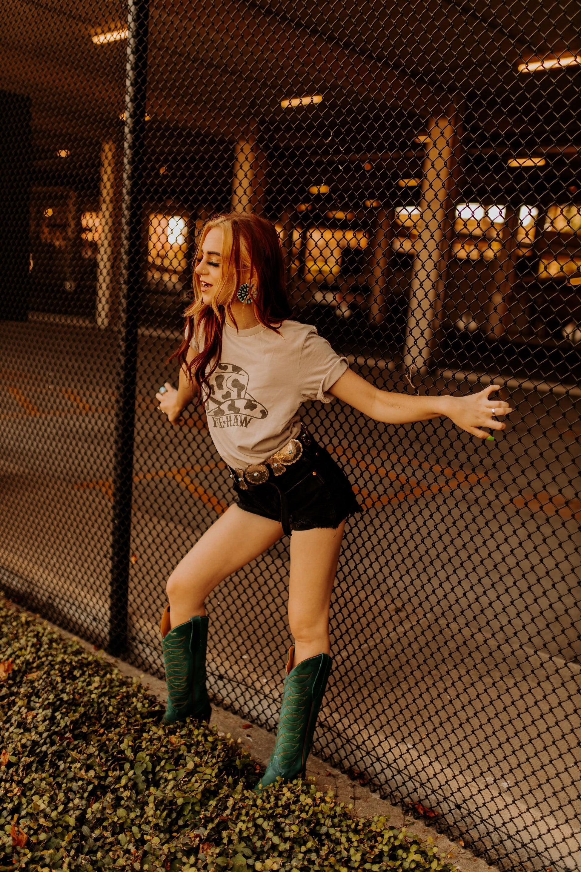 Serve western looks all year round with this Yee Haw Cow Print Hat Graphic Tee! This cow print patterned cowboy hat and yeehaw graphic are calling your name. Pair with your favorite hat and you’ll have the cowboy’s at your feet!