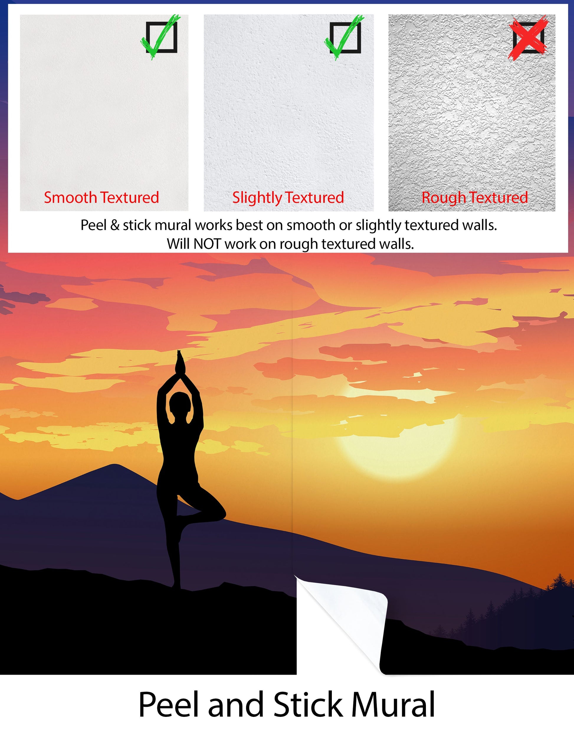 Yoga Meditating On Top of Mountain View Wall Mural. Calm Sunrise Design Peel and Stick Wallpaper. #6364