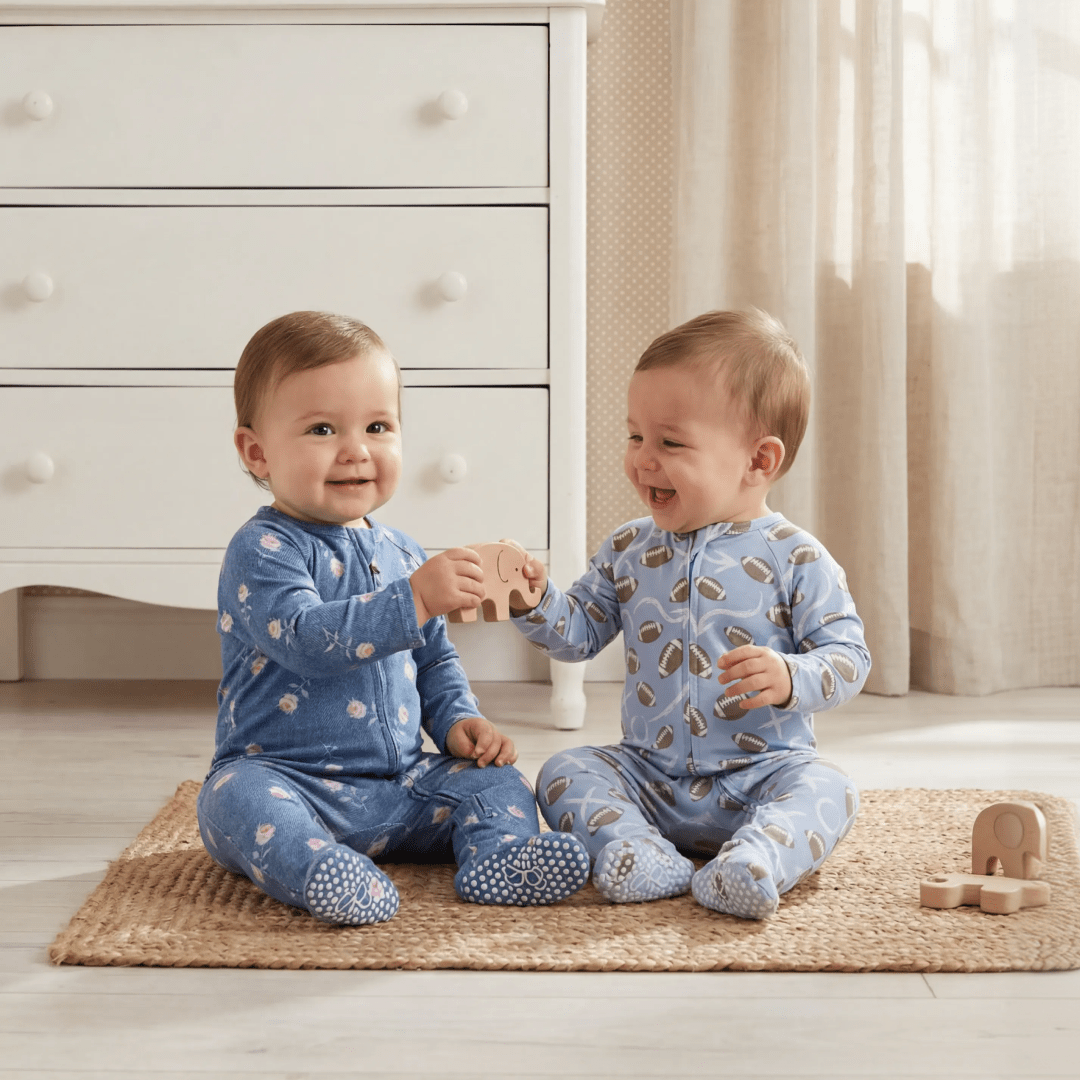 Ask and you shall receive. This yummy footie is equipped with a smooth 2-way zipper, silicone grips on the foot pads and fold-over handcuffs. Plus our silky-soft fabric hugs in all the right places to show off those baby curves.