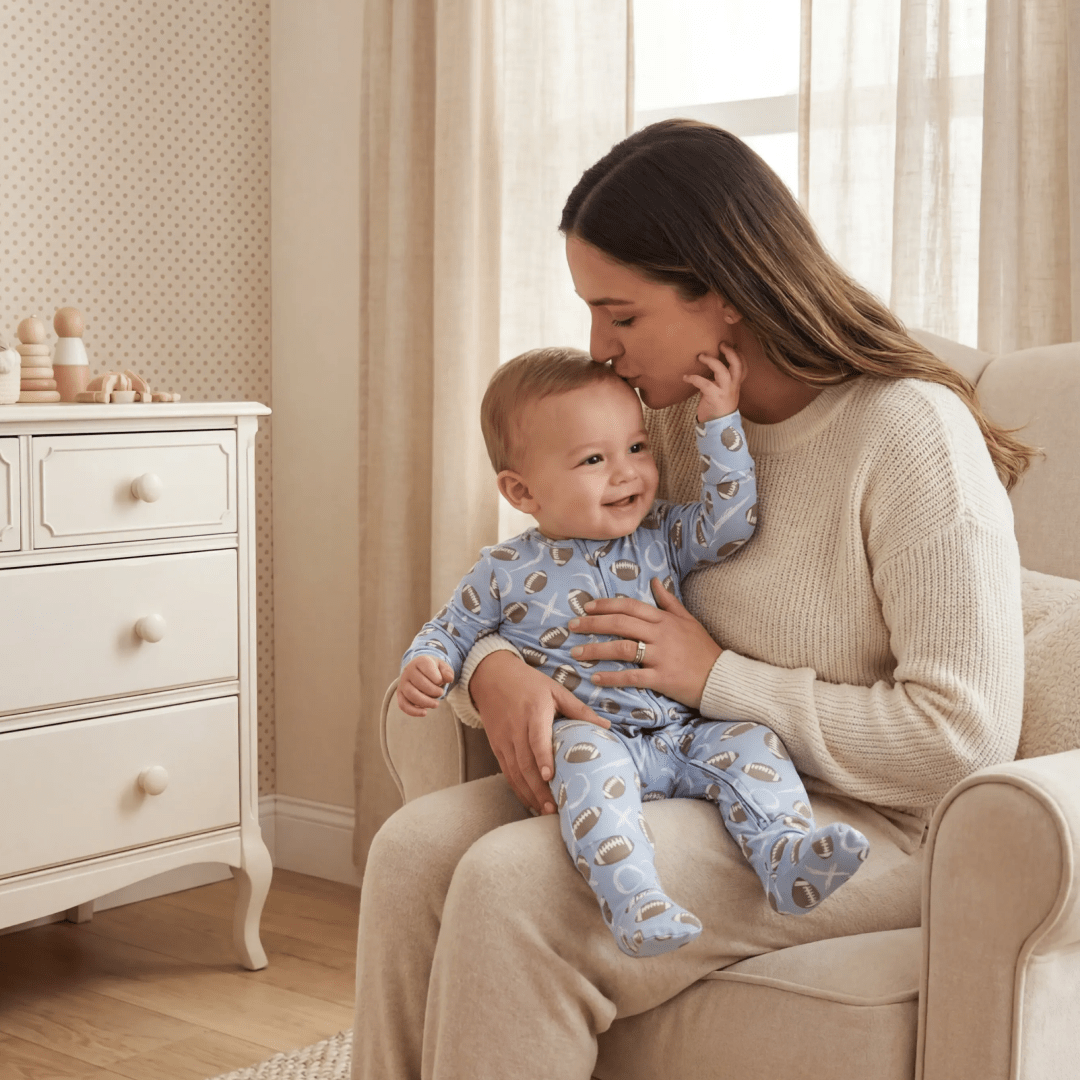 Ask and you shall receive. This yummy footie is equipped with a smooth 2-way zipper, silicone grips on the foot pads and fold-over handcuffs. Plus our silky-soft fabric hugs in all the right places to show off those baby curves.